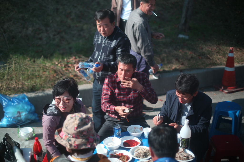 휴계소에서 식사 후 달콤한 담배 한모금... 광주회장 강심범과 이문형