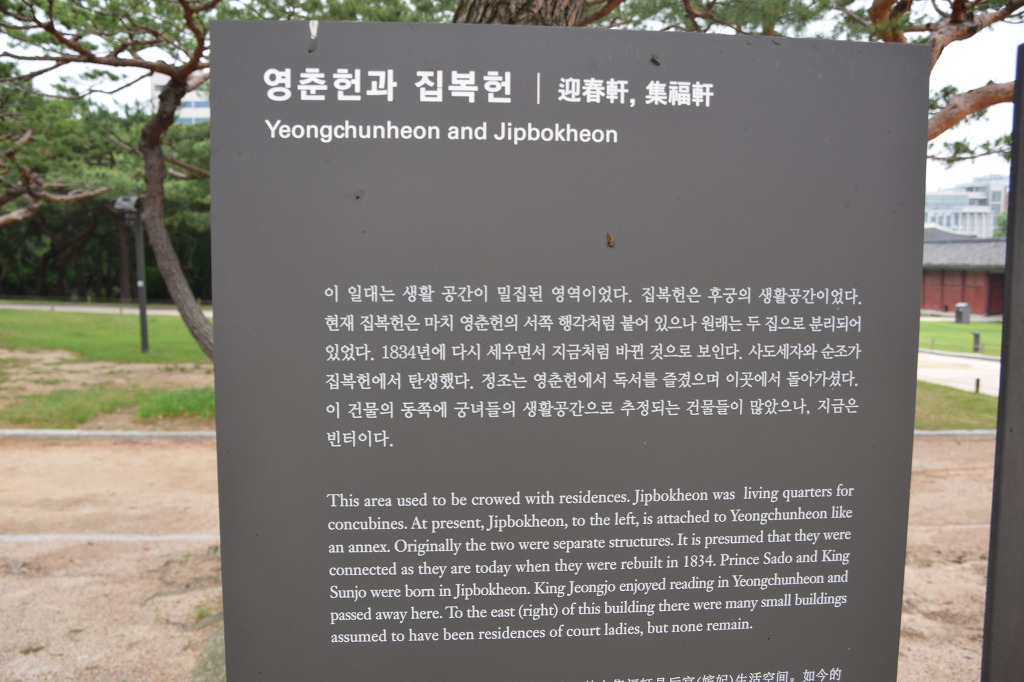 창경궁은 성종 14년(1483)에 세조비 정희왕후, 예종비 안순왕후, 덕종비(추존왕) 소혜왕후 세분의 대비를 모시기 위해 옛 수강궁터에 창건한 궁이다. 수강궁이란 세종 즉위년 1418년, 세종이 상왕으로 물러난 태종의 거처를 위해서 마련한 궁이다.