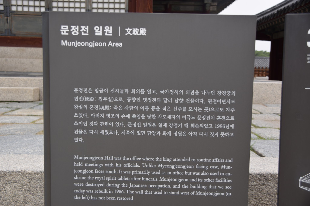 창경궁은 창덕궁과 연결되어 동궐이라는 하나의 궁역을 형성하면서, 독립적인 궁궐의 역할을 함과 동시에 창덕궁의 모자란 주거공간을 보충해주는 역할을 하였다. 성종대 창건된 창경궁은 선조 25년(1592) 임진왜란으로 모든 전각이 소실되었고, 광해군 8년(1616)에 재건되었다. 그러나 인조2년(1624) 이괄의 난과 순조30년(1830) 대화재로 인하여 내전이 소실되었다. 화재에서 살아남은 명정전, 명정문, 홍화문은 17세기 조선시대 건축양식을 보여주며, 정전인 명정전은 조선왕궁 법전 중에서 가장 오래된 건물이다.