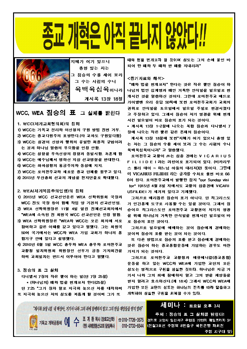 짐승의 표 그 실체를 밝힌다-3 작성자agape21|작성시간14.03.24|조회수59 목록 댓글 0 글자크기 작게가 글자크기 크게가 다음검색 현재 게시글 추가 기능 열기 북마크 공유하기 신고 센터로 신고 댓글 댓글 0 댓글쓰기 답글쓰기 댓글 리스트
