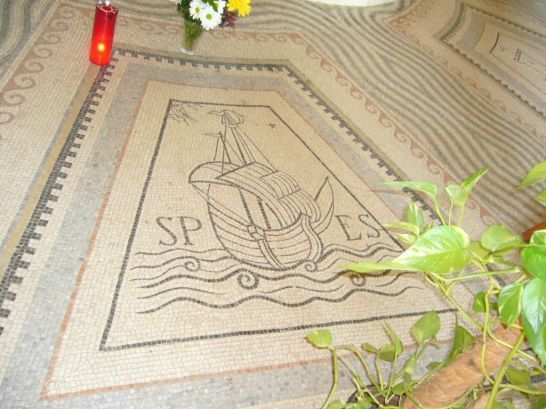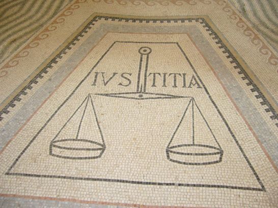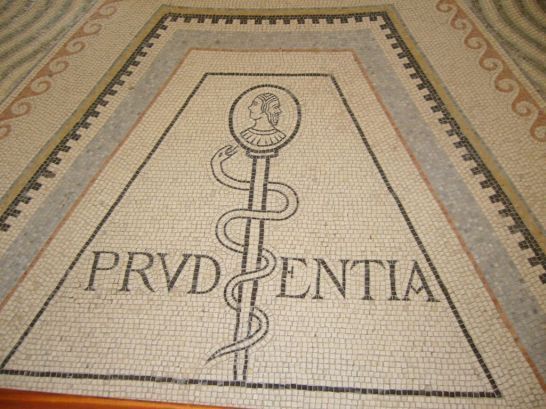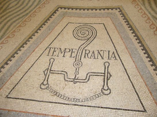 지혜, 정의, 용기, 절제의 네 가지 덕을 모자이크로 장식해 놓았다.