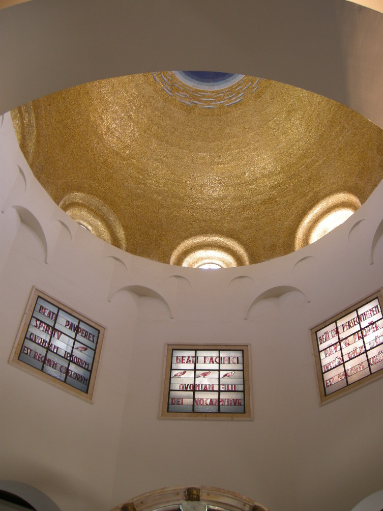 천장의 돔 아래엔 소박하게 참 행복의 여덟 가지 말씀을 스테인드글라스로 새겼고,