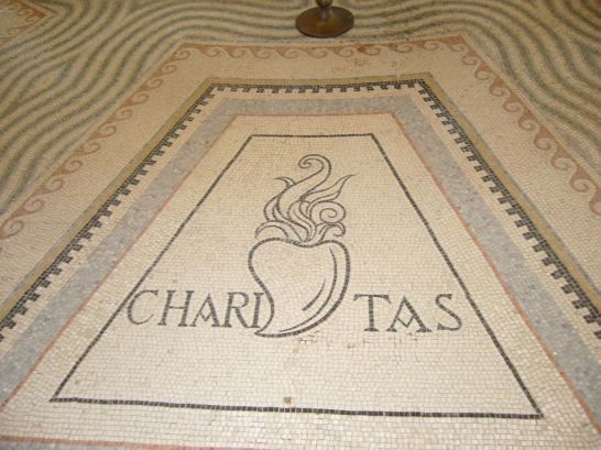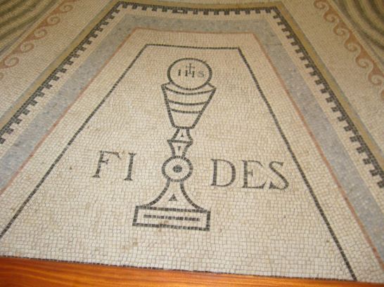 감실 둘레 성당 바닥에는 일곱 가지 덕을 상징하는 믿음, 소망, 사랑 복음삼덕과