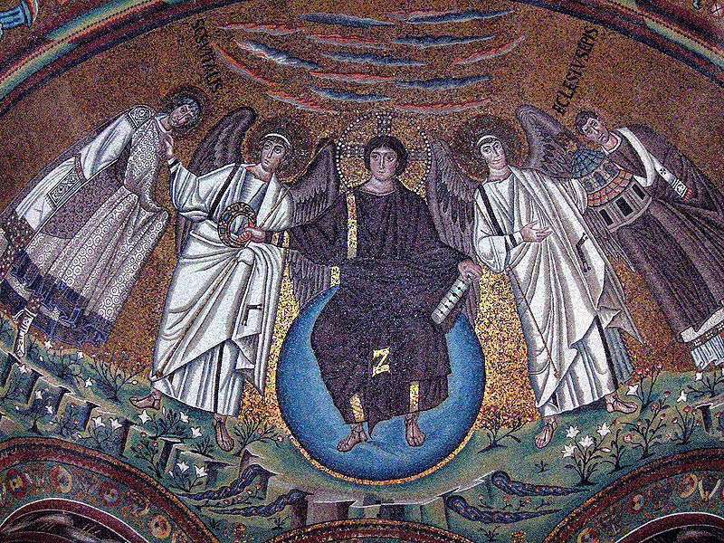 Lamb of God with four angels; byzantine mosaic (by 574)