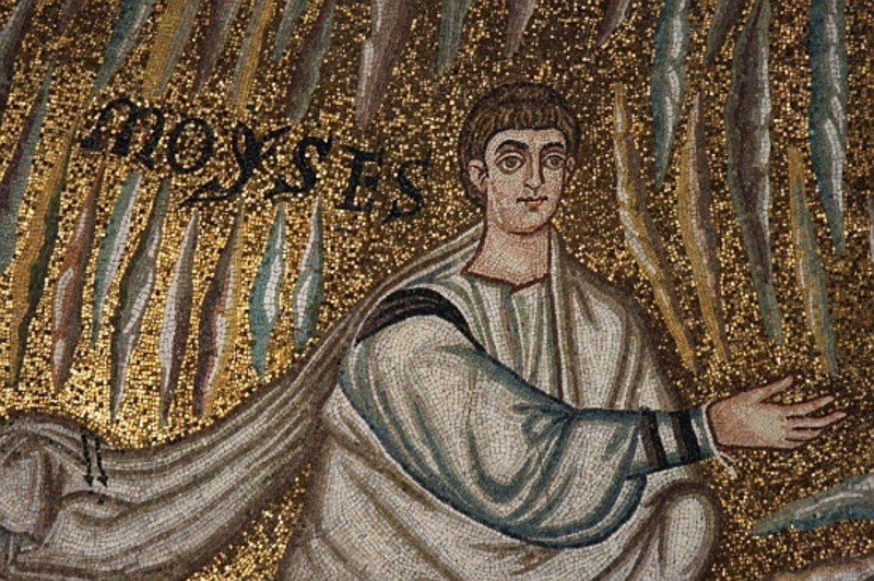 Detail of 7th-century mosaic on the left wall of the presbytery,