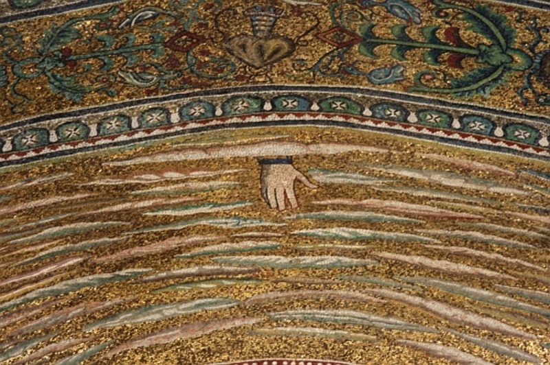 At the bottom of the 6th-century apse mosaic