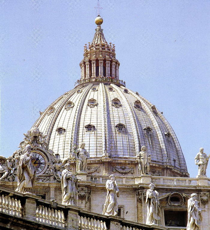 '미켈란젤로(Michelangelo)가' 변경했던 돔 설계는 '식스투스 5세(1585~90 재위)'의 고집으로 마침내 완성되었고 '그레고리우스 14세(Gregorius 14)'의 명령으로 돔 위에 랜턴(채광창)이 세워졌다. '클레멘스 8세