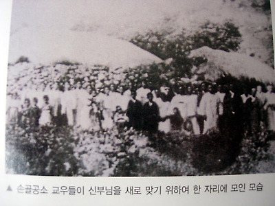 초기 손골공소 교우들이 신부님을 새로 맞기 위하여 모인 모습 (손골성지 팜프렛)