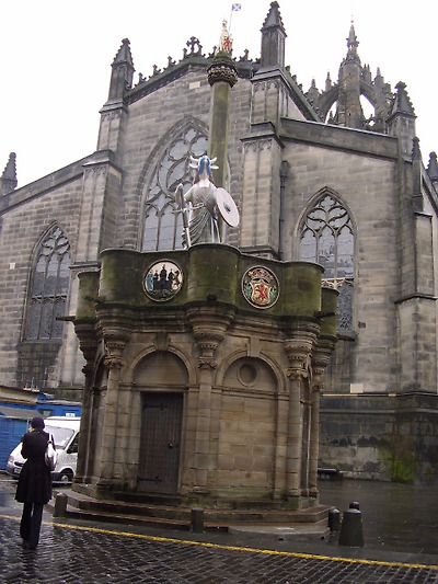 영국 스코틀랜드 에든버러. 뾰족한 왕관 모양의 지붕이 인상적인 이 대성당은 스코틀랜드의 종교개혁을 이끌었던 곳이다. ‘위대한 숙녀’ 또는 ‘북쪽 나라의 아테네’라는 이름으로 알려진 에든버러는 그야말로 매력적인 도시이다. 도시는 2개의 구역으로 확실히 구분된다. 수많은 드라마를 낳은 에든버러 성과 비운의 여왕 메리 스튜어트가 살았던 홀리루드하우스 궁전이 있는 구시가지는 여전히 중세의 모습을 간직한 채, 찾아오는 이들을 매료시키고 있다. 한편, 신시가지는 바둑판처럼 깔끔하게 구획되어 있다. 신시가지는 18세기 이후, 영국의 국왕 조지 1세와 조지 4세 시대에 당시의 건축 양식을 도입한 도시 계획에 기초하여 형성된 것이다. 이 도시의 명칭은 아직도 수수께끼로 남아 있다. ‘매달리다’라는 뜻의 게일어 에딘(edin)에서 유래한다고도 하고, 7세기에 노섬브리의 에드윈 왕이 축조한 ‘에드윈 성’에서 유래했을 가능성도 배제할 수 없다. 또한 버러(burgh)라는 말은 성벽에 둘러싸인 도시라는 뜻이다. 스코틀랜드의 상징이라고 할 수 있는 유명한 에든버러 성은 시가지를 내려다보는 높은 지대의 견고한 화산암 위에 축조되어 있다. 성 안에는 역대 스코틀랜드 왕의 휘장과 보물이 보존되어 있다. 찰스 3세는 1661년에 자신의 대관식에서 이들 보물을 몸에 걸친 마지막 왕이 되었다. 잉글랜드인은 스코틀랜드인이 자국의 상징으로서 소중히 지켜온 이 거대한 요새를 수세기 동안 여러 차례 공격했다. 그리고 마침내 스튜어트 왕조의 마지막 왕은 성을 떠나 도망가야 했다. 성 안에는 노르만 양식의 건물로는 가장 오래된 세인트마거릿 예배당이 있다. 이것은 단랑식으로 지어진 소박하고 작은 성당으로서, 11세기 말에 스코틀랜드 왕 맬컴 3세의 아내인 마거릿을 위해 기증한 것이다. 맬컴 3세는 색슨인인 마거릿과 결혼하여 이 곳에 터를 잡았는데, 그의 아들 데이비드 1세가 1124년에 즉위했을 때는 이 바위산에 훌륭한 성이 완성되었다. 에든버러 성은 온갖 정치적 혼란과 문화 변동을 겪는 과정에서 왕궁, 성채, 보물창고, 병영, 감옥으로서의 역할을 수행해 왔다. 1603년에 잉글랜드 여왕 엘리자베스 1세가 죽자, 비극의 스코틀랜드 여왕 메리 스튜어트의 아들이자 프로테스탄트인 스코틀랜드 왕 제임스 6세가 잉글랜드 왕 제임스 1세와 즉위하게 되었다. 이로써 스튜어트 왕조의 왕이 두 나라의 왕위를 겸하게 되었다. 왕은 집정의 거점을 런던으로 옮겼고, 그에 따라 에든버러의 정치적, 경제적 특권은 제한되었을 뿐만 아니라 성 안의 생활용품은 모두 반출되었다. 남겨진 것은 의자 하나뿐이라고 할 정도였다. 오늘날 성의 대부분은 군사 박물관으로 이용되고 있다. 수많은 전시품 가운데에는 제임스 2세의 손자 찰스 에드워드가 일으킨 1746년의 그 유명한 컬로든모어 전투에서 이용된 군기 조각도 있다. 이것들은 스코틀랜드인이 국가의 자랑스러운 유물처럼 소중히 다루는 물건이다. 제임스 4세 시대에 스코틀랜드의 수도가 되었던 에든버러는 인구가 8000명을 헤아렸다. 그리고 130년 후인 1636년에는 6만 명으로 불어났다. 이와 같은 급격한 인구 증가를 거주 지역 안에서 흡수하기는 힘들었다. 왜냐하면 15세기에 도시의 방위를 위해 노르 호를 만들었기 때문이다. 이리하여 에든버러는 수평 방향이 아니라 수직 방향으로 발전하게 되었다. 이를테면, 서로 인접한 좁고 수직적인 가옥이 출현했는데, 이들은 마천루의 효시라고 할 수 있는 10층 정도의 고층 주택을 형성했던 것이다. 이와 같은 건축 양식의 전형을 보여 주는 것이 론마켓에 있다. 1620년에 지은 건물로서 글래드스톤스랜드라고 불리는 한 상인의 6층짜리 주택이 그것이다. 건물 아래쪽 3층 부분은 천장을 갖가지 색상으로 장식해 놓았는데, 아라베스크와 새, 꽃, 과일 등의 무늬가 아름답게 그려져 있다. 에든버러 성에서 홀리루드하우스 궁전까지 1마일의 거리, 즉 로열마일(왕궁로)이라고 불리는 약 1.6km의 거리가 에든버러 구시가지의 중심을 관통하고 있다. 홀리루드하우스 궁전과 에든버러 성은 동서로 뻗은 번화가의 양 끝에 위치하고 있는데, 이 로열마일은 캐슬힐, 론마켓, 하이스트리트, 캐넌게이트 등의 4개 거리로 갈라진다. 로열마일이라고는 하지만 이것은 분명히 서민의 거리이기도 한다. 그 곳에는 귀족과 상인, 기술자의 집들이 늘어서 있는데, 이 거리에서 사람들은 군주를 칭찬하거나 비난하기도 하고, 종교에 대한 논쟁으로 밤을 지새우거나, 돌연 광신적인 언동을 할 수도 있었다. 이 곳은 현재도 관광객들이 왕년의 역사를 다시금 음미할 수 있는 장소이다. 1639년에 스코틀랜드 의회가 시작되고 의사당은 의원들로 메워졌지만, 1707년에 잉글랜드와 스코틀랜드가 한 국왕 아래 합병하여 그레이트브리튼 왕국을 형성하게 되자 의회는 폐지되었다. 국회 의사당은 당초 상품 거래소로 건립된 것이지만 나중에는 스코틀랜드 고등재판소가 되었다. 특기할 만한 것은 그 곳의 독특한 천장인데, 네오 고딕 양식의 끝이 뾰족한 들보가 조합된 것이다. 또한 선명한 색채의 스테인드 글라스는 뮌헨의 궁정화가 빌헬름 폰 카울바흐의 작품