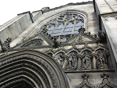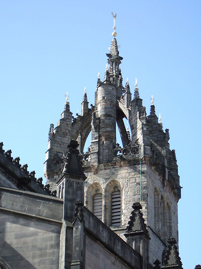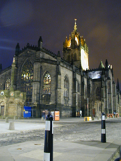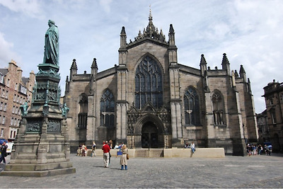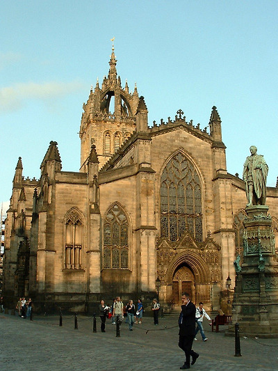에든버러 로열마일 한 복판에 위치한 독특한 왕관 모양의 탑이 있는 세인트 자일스성당은 12세기의 성인 세인트 자일스에 헌정하는 성당으로 건설되었다. 화재로 소실되고 개축을 거듭하면서 현재의 모습을 갖추었다. 대성당이긴 하지만 중세 이후부터는 스코틀랜드의 프로테스탄트 중심지 역할을 하고 있다. 16세기 중반 스코틀랜드의 종교 개혁자 존 녹스는 이 거리에서 프로테스탄트 동지를 규합했다. 녹스가 9세기에 설립된 역사 깊은 세인트자일스 대성당을 자신의 사상을 전달하는 장소로 선택한 것은, 대성당이 에든버러 성과 국회 의사당을 이어주는 형태로 로열마일의 하이스트리트에 있기 때문이다. 도시의 상징 가운데 하나인 세인트자일스 대성당의 탑은 1495년에 건립된 것인데, 노르만 양식의 4개의 기둥이 윗부분의 가늘고 뾰족한 지주를 받쳐 주고 있어, 전체적으로 섬세한 인상을 준다. 이것은 이 성당 건축 가운데에서도 가장 뛰어난 부분이다. 그렇지만 1911년에 세워진 고딕양식의 시슬(Thistle:엉겅퀴로, 스코틀랜드의 국화) 예배당의 화려한 나무 조각장식도 인상적이다. 내부에 들어서면 화려한 스테인드 글라스가 방문객을 맞는다.