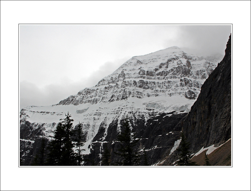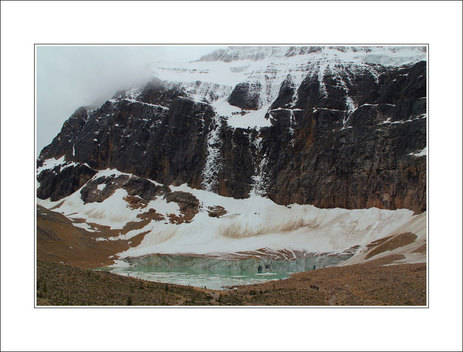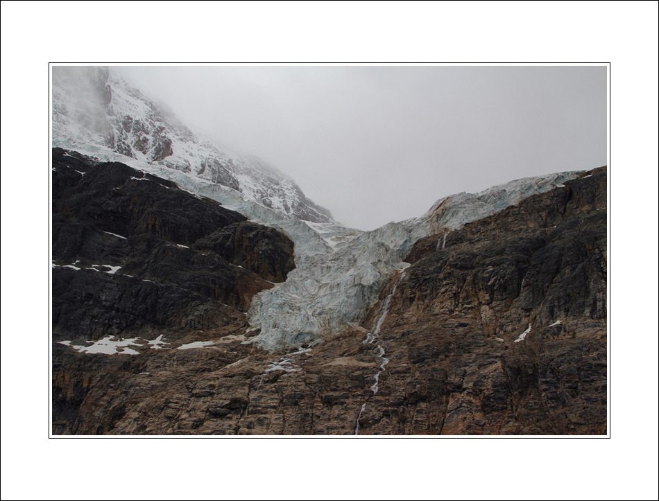 제스퍼 국립공원의 관광 하이라이트라 할 수 있는 Mt. Edith Cavell에 갔을 때 운 나뿌게도 비가 뿌리고 흐렸습니다, 그러나 한편, 종일 비가 내리는 중에서도 엔젤빙하 아래까지 트레일하는 두어시간 동안 그나마 빗줄기가 가늘어 지고 잠시 그쳐주기까지 한 것만으로도 감사할 일입니다 <2011.7.10>