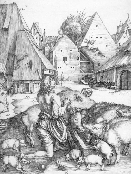 1496년 경 뒤러는 방탕한 아들의 참회의 순간에 주목하여 이를 동판화로 제작한다.