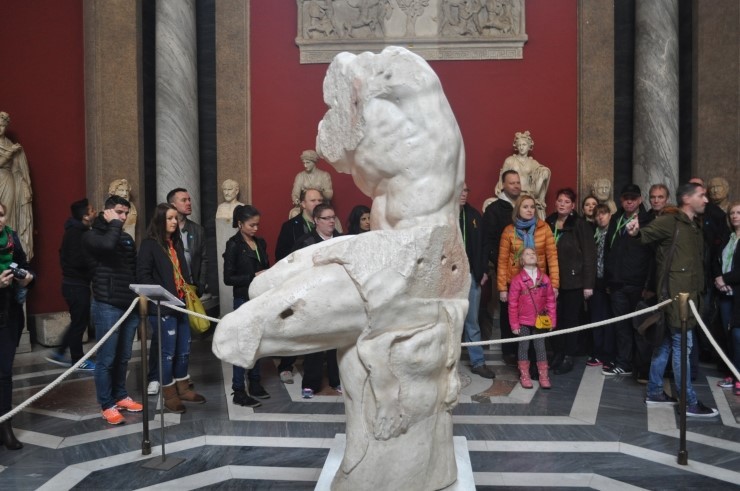 조각상에서 오른쪽 팔꿈치가 왼쪽 대퇴부 위로 교차 하듯 자연스럽지 않은
