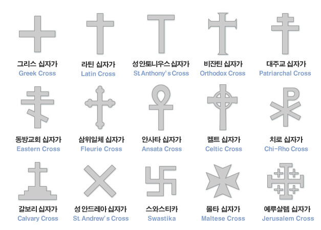 횡목이 짧고 종목의 아래쪽이 긴 것(라틴 식 십자가)이 있다.