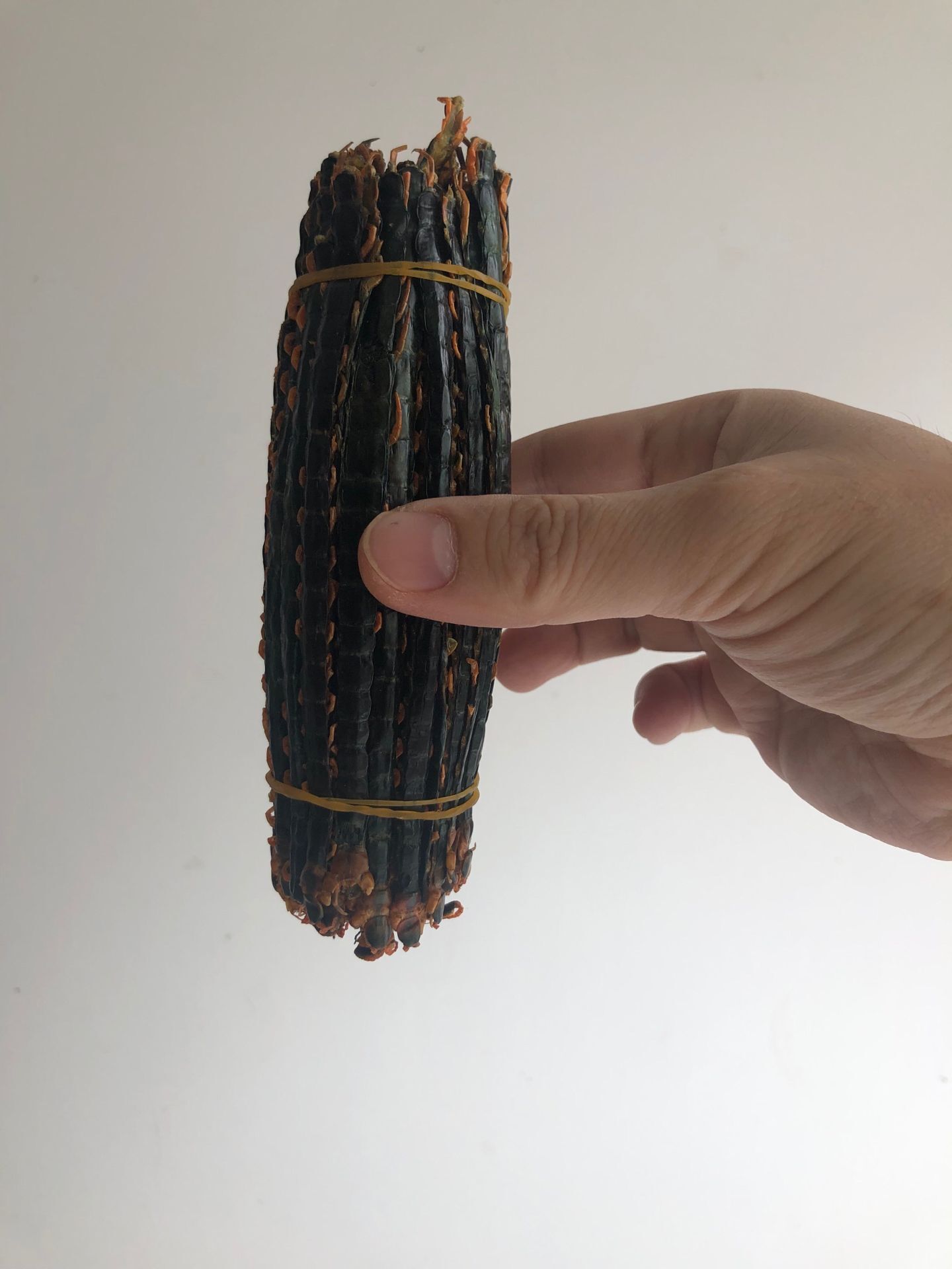 술에 담갔다가 가공한 오공:오공의 두부와 발을 떼낸 다음 술을 쳐서 일정하게 수분이 있을 때 약한 불에 건조한다.