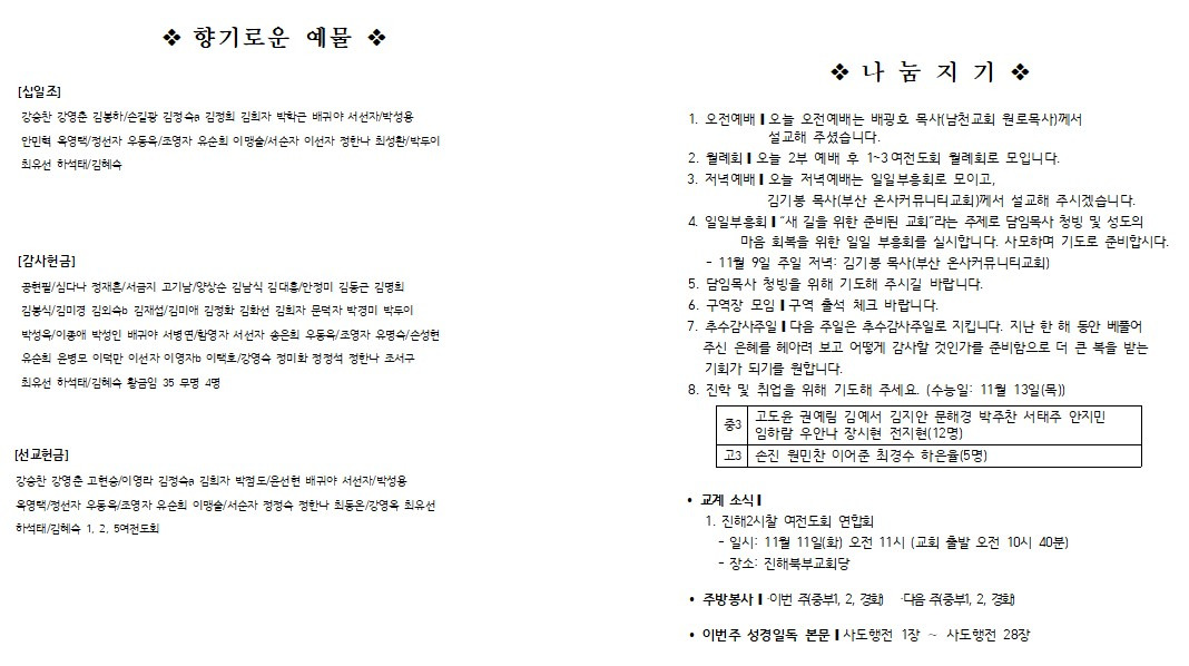 2025.11.09 교회 주보입니다 작성자사무 간사|작성시간25.11.08|조회수381 목록 댓글 0 글자크기 작게가 글자크기 크게가 다음검색 현재 게시글 추가 기능 열기 북마크 신고 센터로 신고 댓글 댓글 0 댓글쓰기 답글쓰기 댓글 리스트
