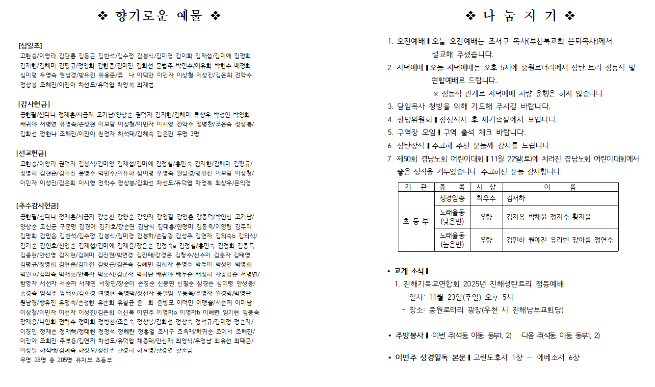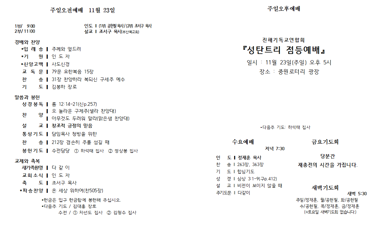 2025.11.23 교회주보입니다 작성자사무 간사|작성시간25.11.22|조회수343 목록 댓글 0 글자크기 작게가 글자크기 크게가 다음검색 현재 게시글 추가 기능 열기 북마크 신고 센터로 신고 댓글 댓글 0 댓글쓰기 답글쓰기 댓글 리스트
