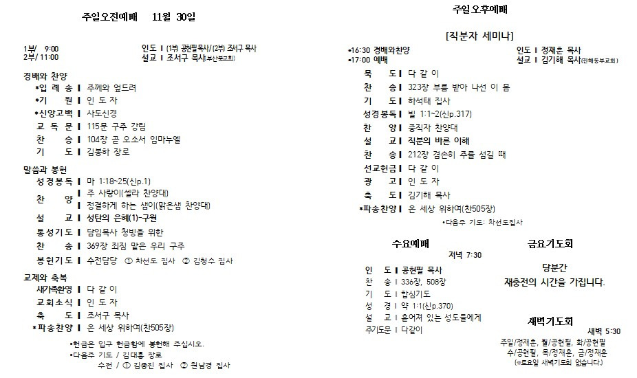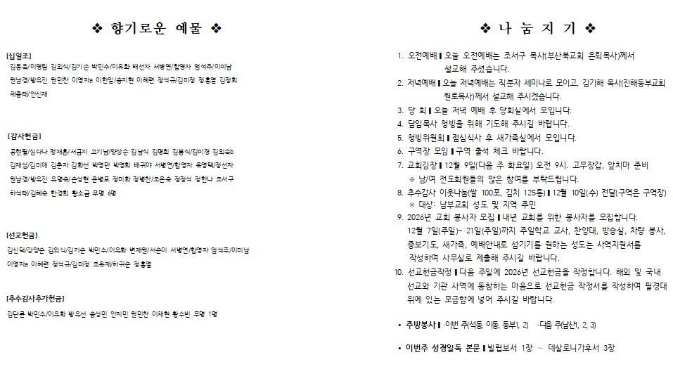2025.11.30교회주보입니다. 작성자사무 간사|작성시간25.11.29|조회수314 목록 댓글 0 글자크기 작게가 글자크기 크게가 다음검색 현재 게시글 추가 기능 열기 북마크 신고 센터로 신고 댓글 댓글 0 댓글쓰기 답글쓰기 댓글 리스트