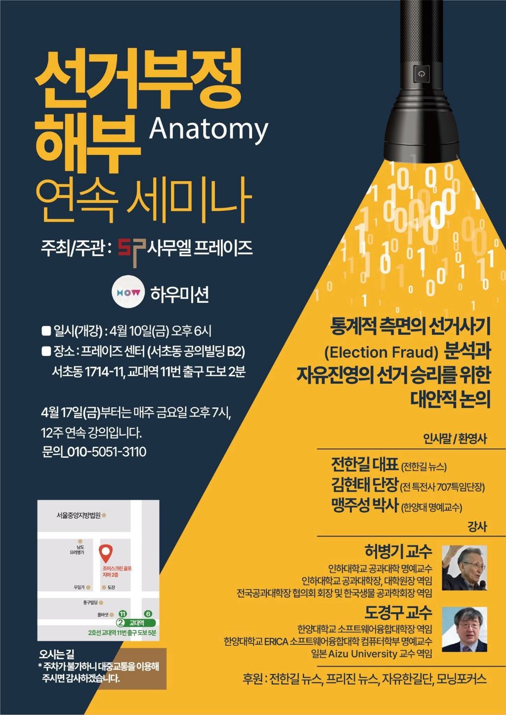 인하공대 허병기, 한양대 도경구 교수, 4월 10일부터 '선거 부정 해부 연속 세미나' 연다 작성자Stephan|작성시간26.04.08|조회수22 목록 댓글 0 글자크기 작게가 글자크기 크게가 다음검색 현재 게시글 추가 기능 열기 북마크 공유하기 신고 센터로 신고 댓글 댓글 0 댓글쓰기 답글쓰기 댓글 리스트