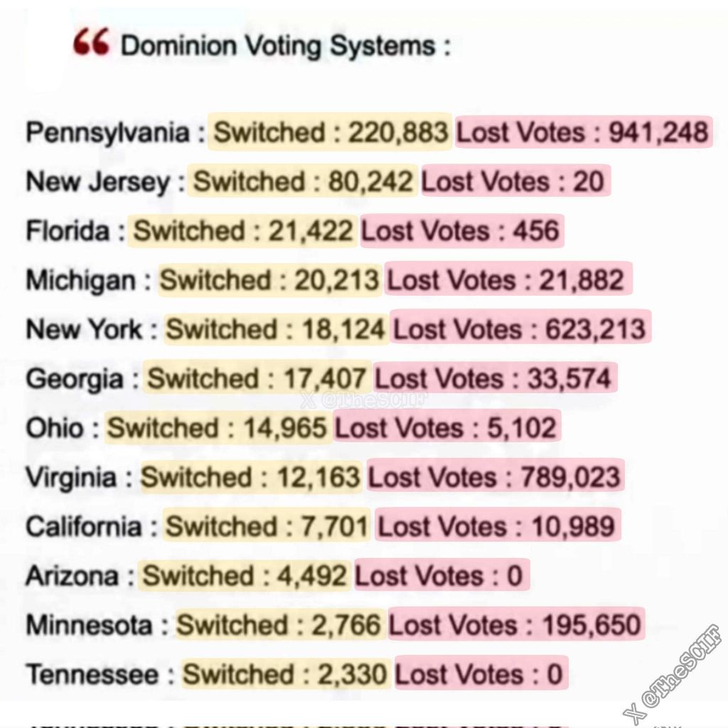 우연히도, 바꿔치기되거나 파괴된 투표 중 어느 것도 바이든이나 민주당원들에게 불리하게 작용하지 않았습니다. 오직 트럼프와 공화당원들만이, 모든 주에서 매번 피해를 입었습니다.