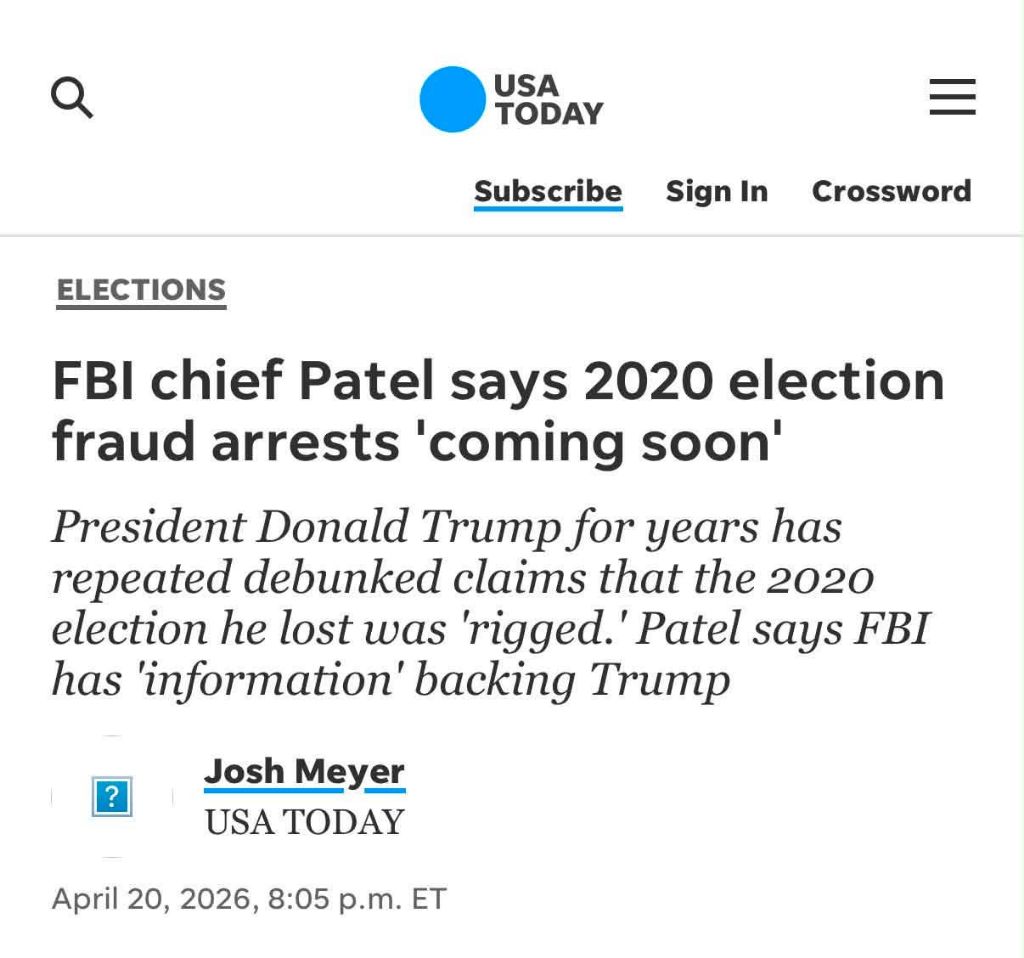 작성자Stephan작성시간26.04.22조회수16 목록 댓글 0캐시 파텔 FBI 국장, '곧 2020년 미국 부정선거 주범들이 기소될 것'... 미 주류 언론 <USA TODAY> 보도
