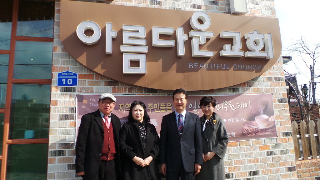 서영준 장로, 이금희 대표, 안경수 목사, 홍도위 사모(교회 정문)