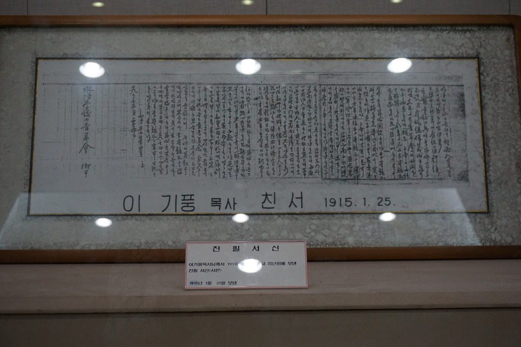 다음날 날이 밝자 우리는 이기풍 목사 선교기념관을 찾아갔다. 이기풍 목사의 출생 시기는 약간 엇갈려 1865년인지 1868년 정확하지 않다. 그는 어릴 때 명민했고, 한학에 뛰어났지만 외세의 침략에 반감을 가지고 있었다. 이기풍은 마펫(마포삼열, Samuel Austin Moffet) 선교사의 집에 몰래 불량배들을 끌고 가 돌덩이를 투척했다. 그러나 한 달 뒤 마펫 선교사가 길거리에서 복음을 전하자 울분에 차서 돌을 쥐고 턱을 정통으로 가격하고 줄행랑쳤다.