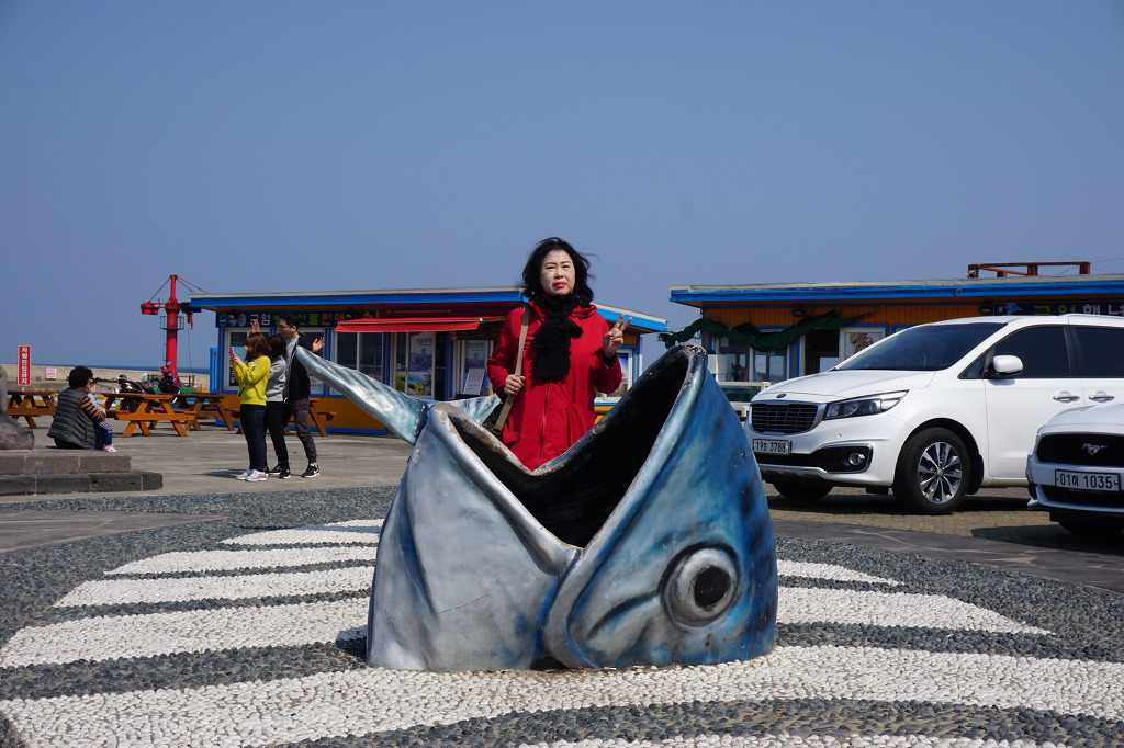 바다에 둘러싸인 제주에는 해산물 요리가 많다. 고등어를 메뉴로 하는 가게들도 많았다. 애월해안의 구엄마을 돌염전에 있는 고등어 조형물