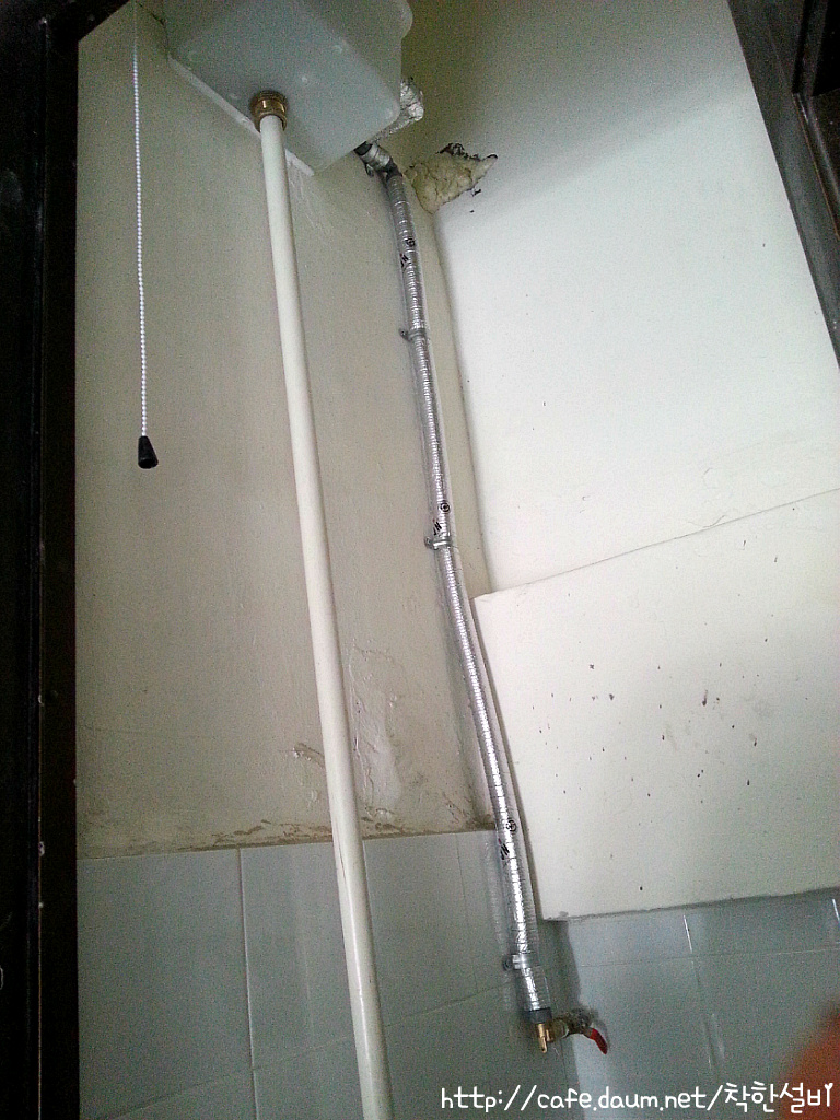 세척수통의 급수배관과 배수배관을 설치완료한 모습입니다.