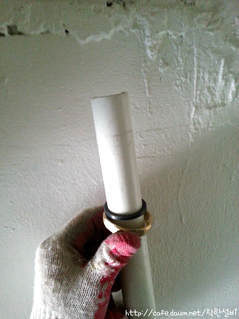부속의 끝 부분에 25mm pvc관을 끼워놓은후 고무 빠킹을 이용 고정합니다.