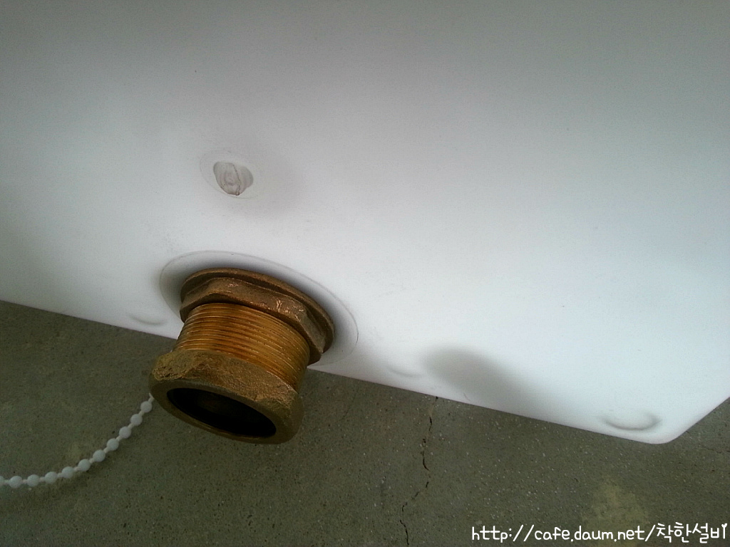 원쪽의 손잡이를 당기면 구멍이 들리면서 물이 일순간에 배수관 pvc 25mm관을 타고 변기로 내려 가게 됩니다.
