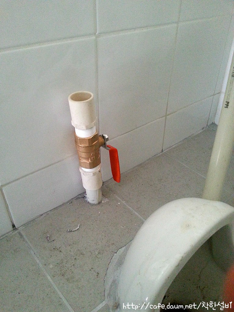 볼밸브를 시공 하지 않아도 되지만 .. 시간이 지남에 따라 세척수를 제어해주는 부속부분이 노후가 되어 물이 줄줄 세는 경우가 많아 예비로 물을 잠글수 있는 밸브를 시공합니다.