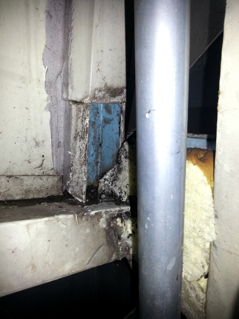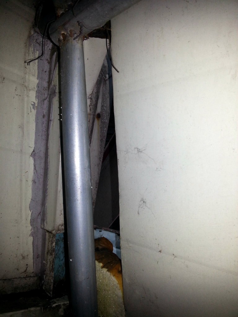 여기 크게 찍은 사진 뻥뚤려있는 사각판넬로 처마에 고여서 흐르는 물이 흘러 이곳으로 들어 오는것입니다.