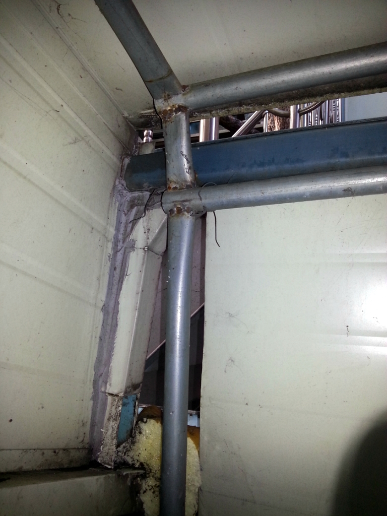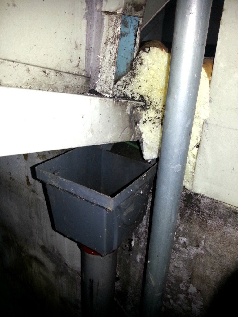 배관을 해서 배수와연결을 시켜야하는데 가설 건물이라 소홀했던것 같습니다.