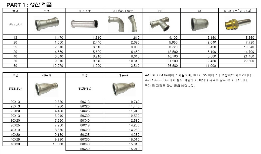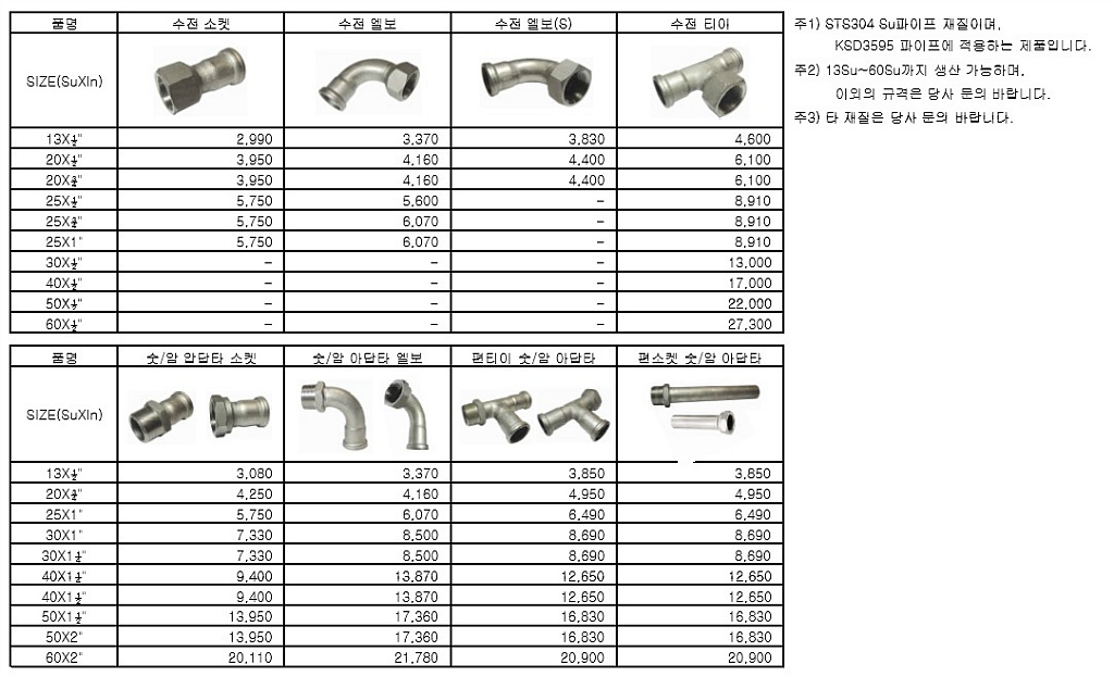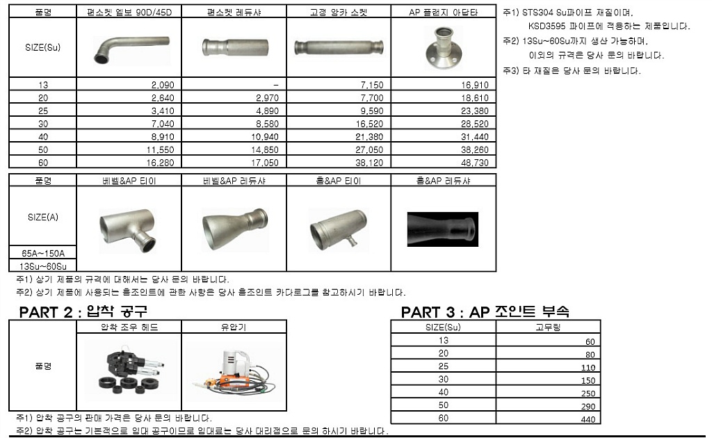 AP조인트 , SR조인트 , 수파이프부속 가격 압착부속의 가격정보 입니다.