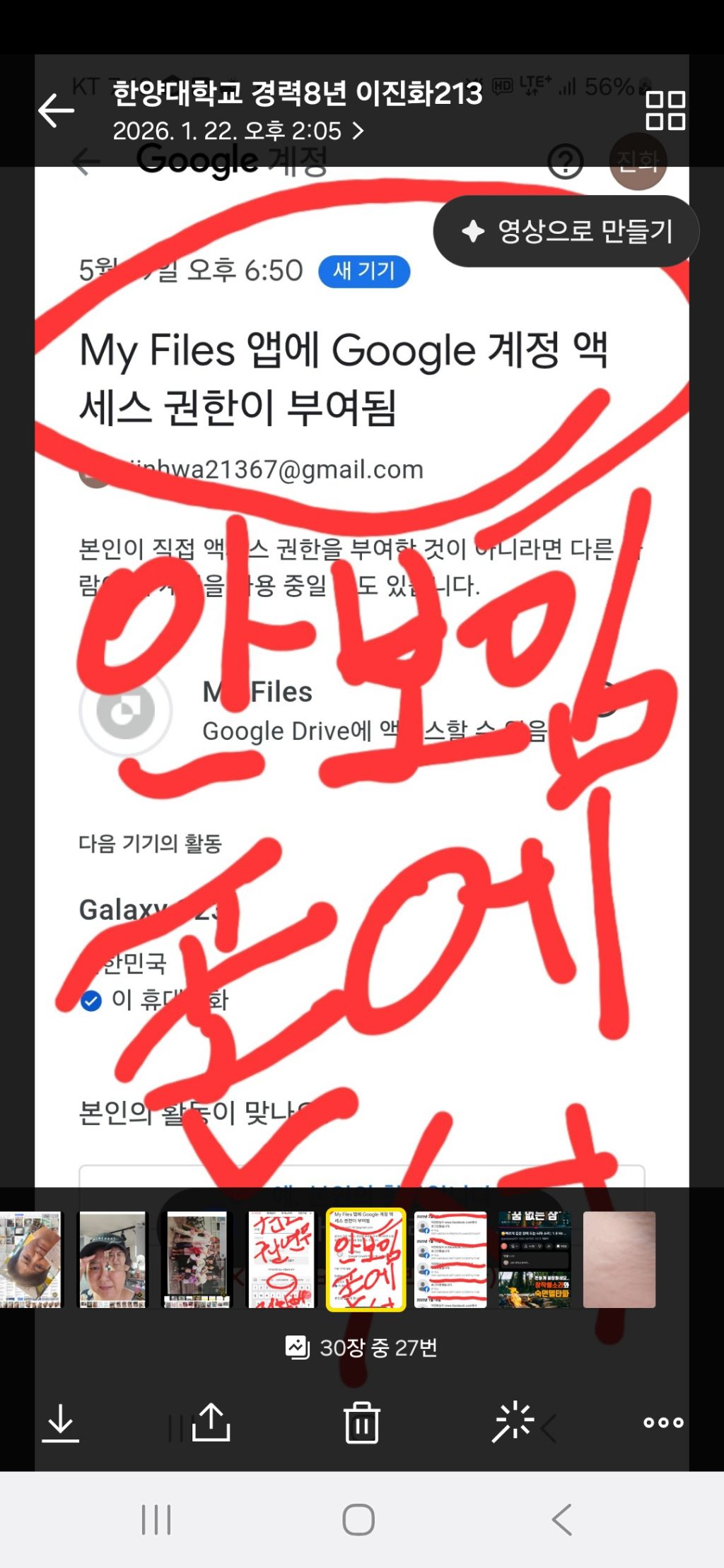 마이박스 아이디 karma56789 비번 wlsghk213!인데 계속 바꿔서 매일저녁 7시에 제가 바꾸겠습니다 만든적없는jinhwa21
