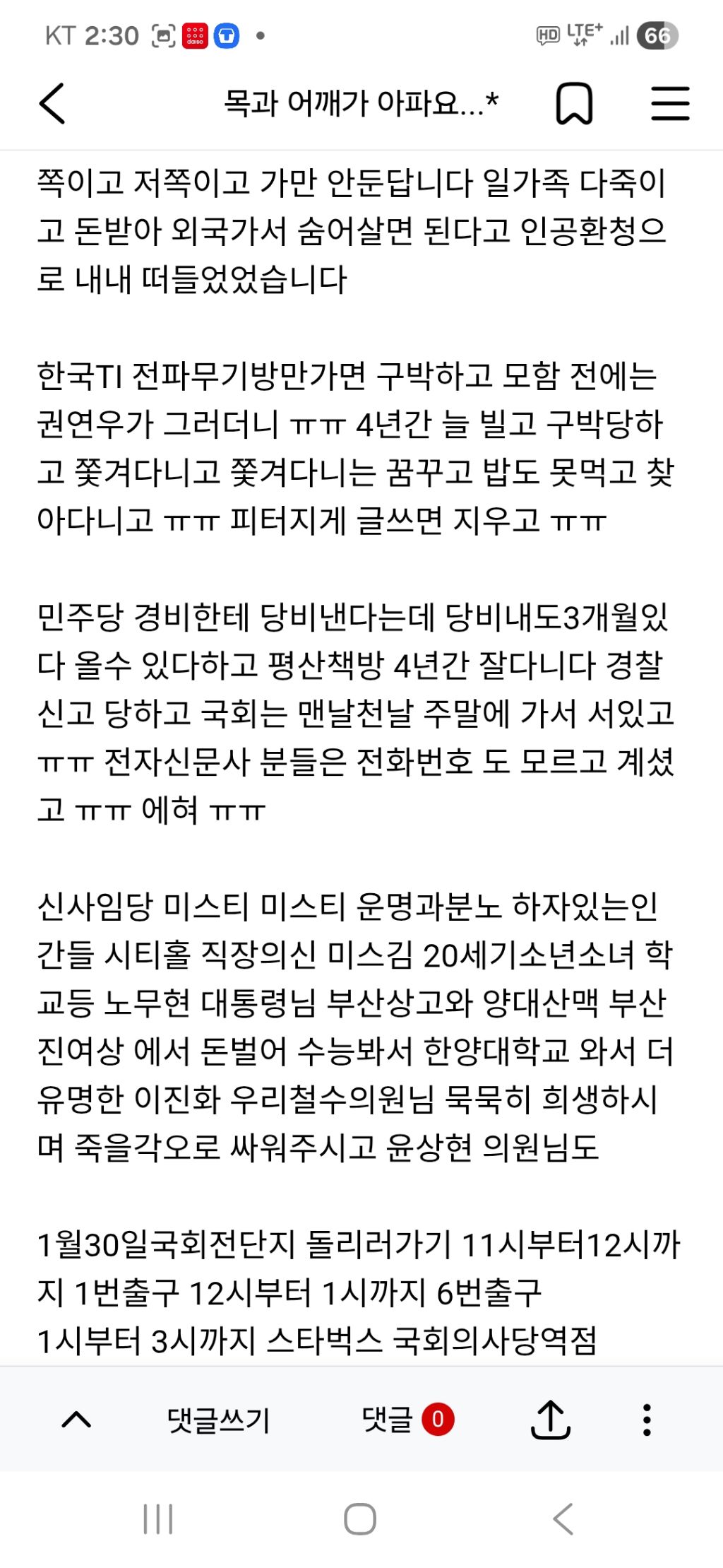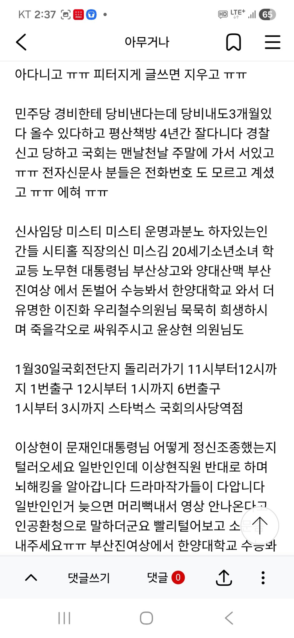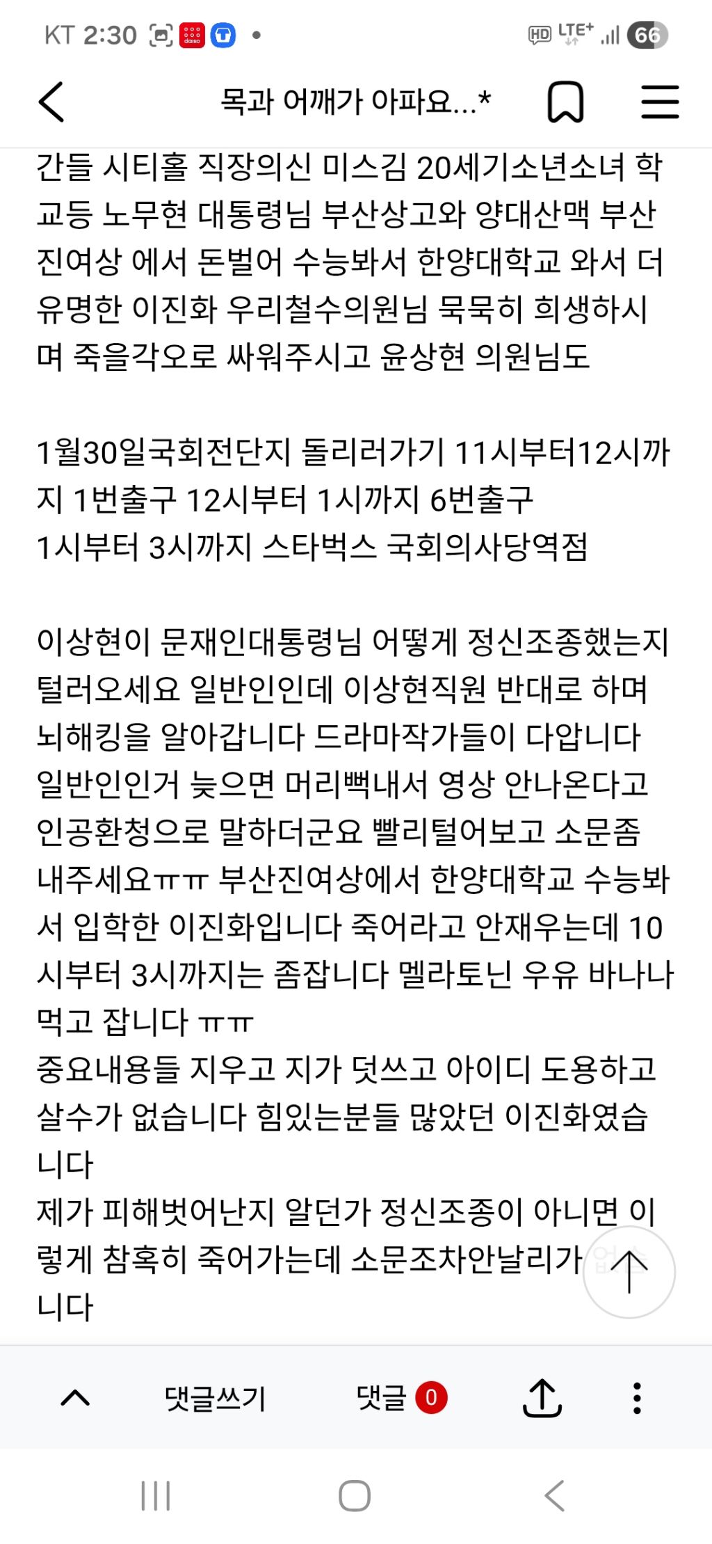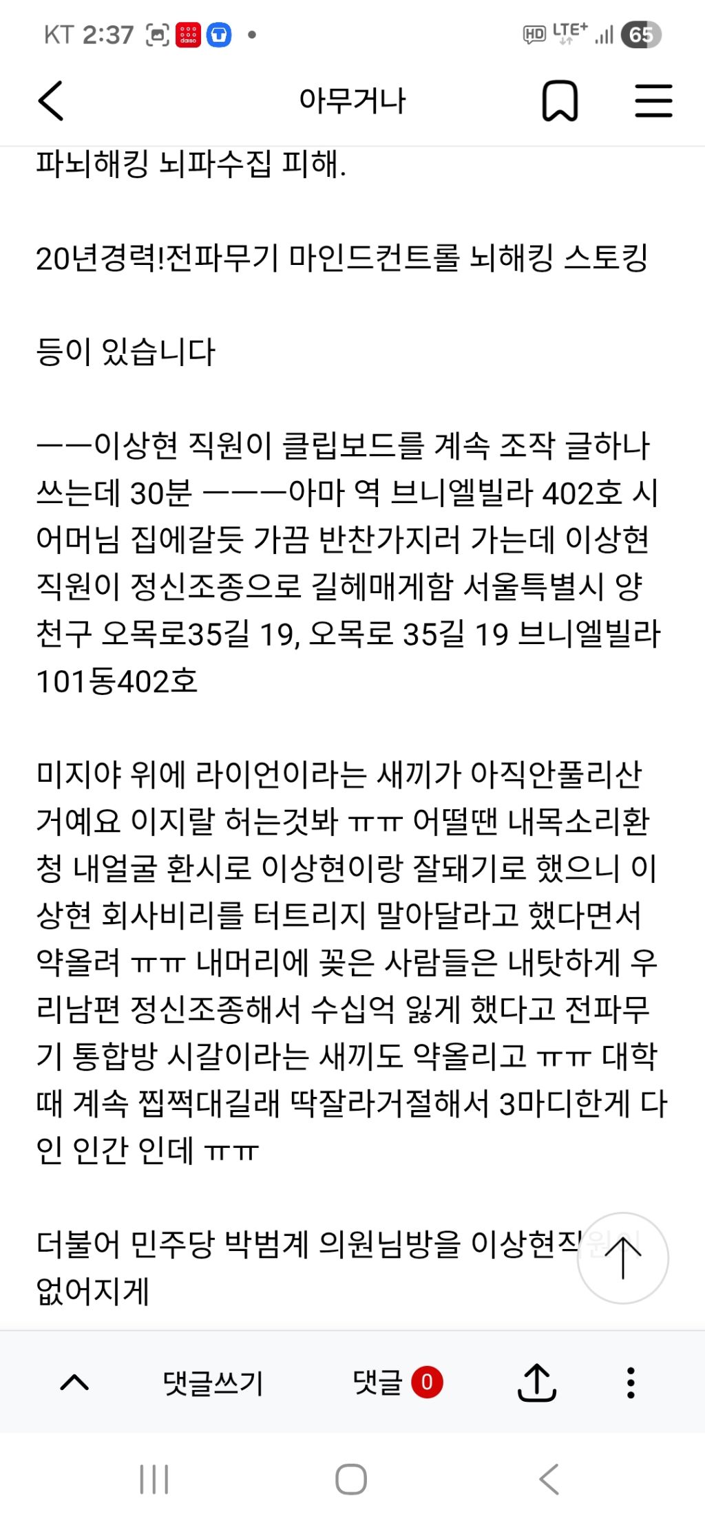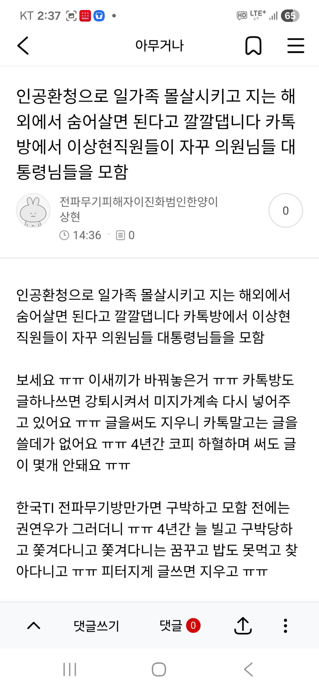이상현직원이 의원님들 지지자 핸드폰에서만 보이게 내가 욕쓰는것처럼 보이게 하나봐 ㅠㅠ 딸은 8가지 전파무기병으로 죽어가는데 어떤도움도 못받게 하고 살수가 없어 ㅠㅠ