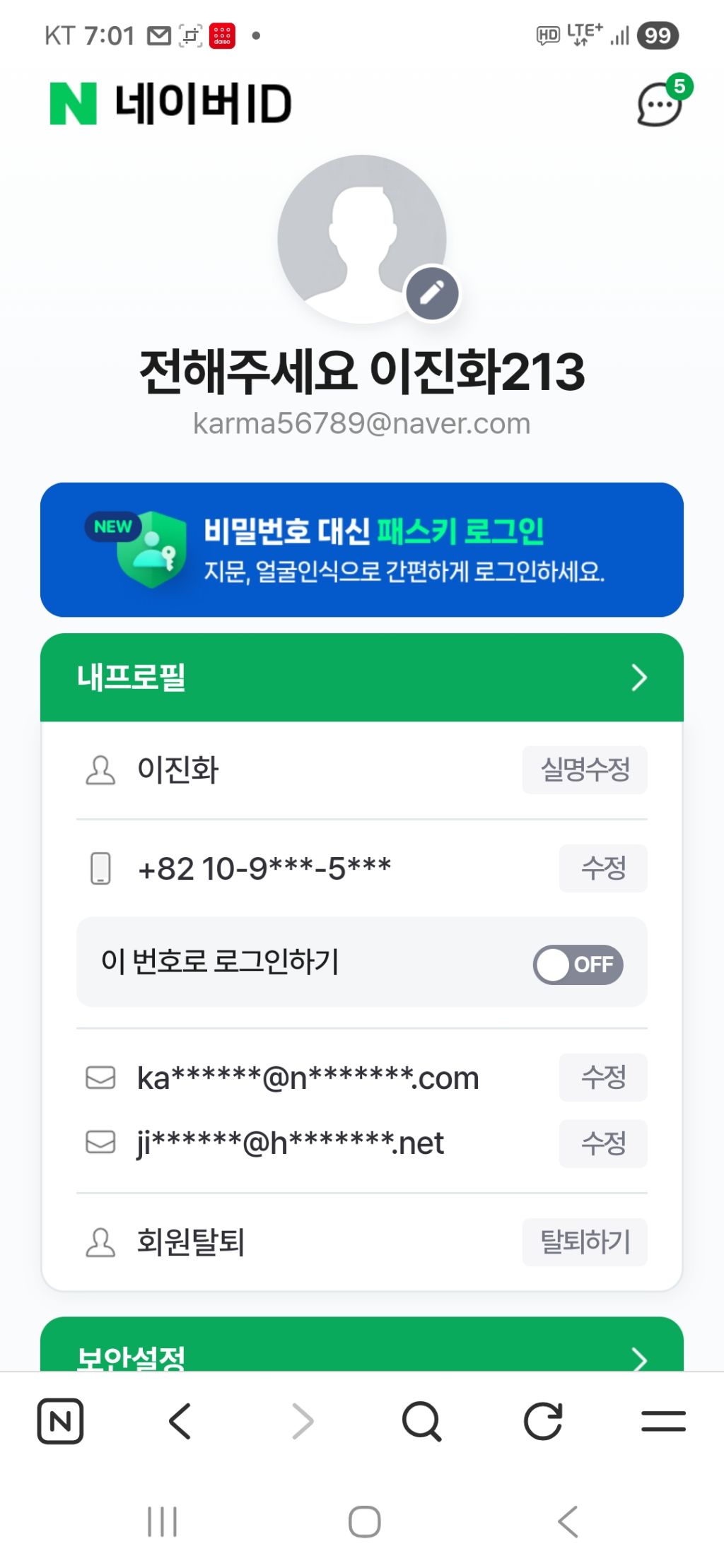 마이박스 아이디 karma56789 비번 wlsghk213!인데 계속 바꿔서 매일저녁 7시에 제가 바꾸겠습니다 jinhwa213카카오메일 만든적없는데 삭제방법을 모릅니다 ㅠㅠ