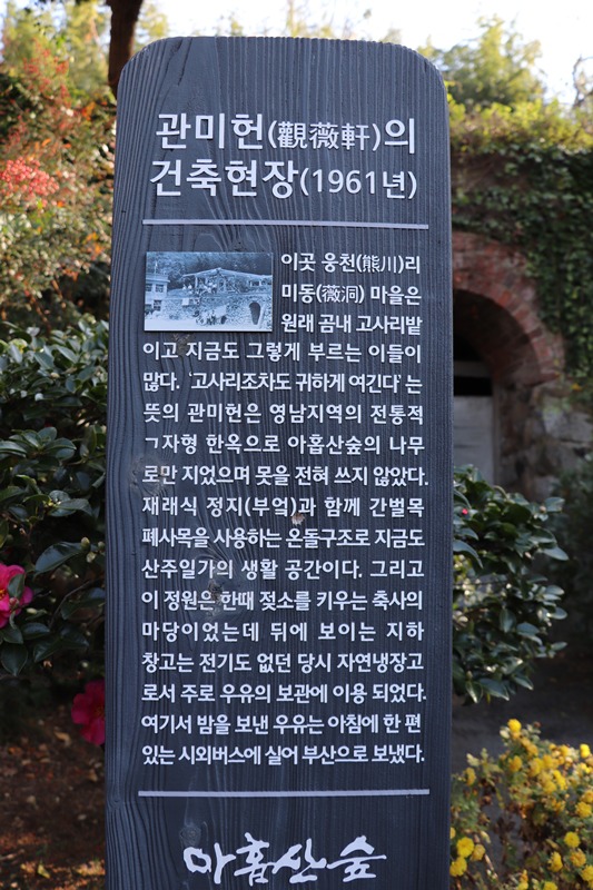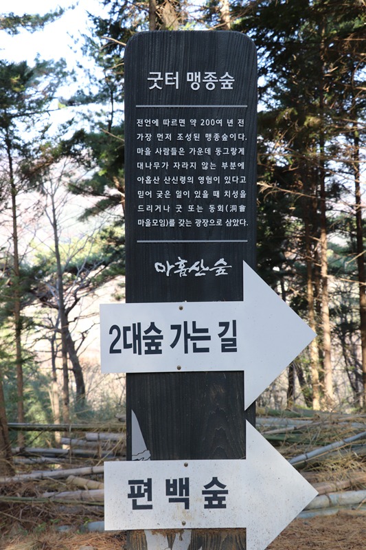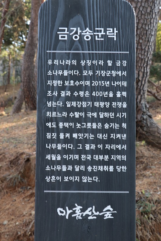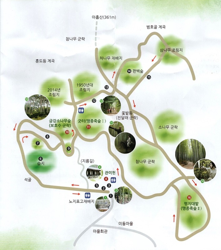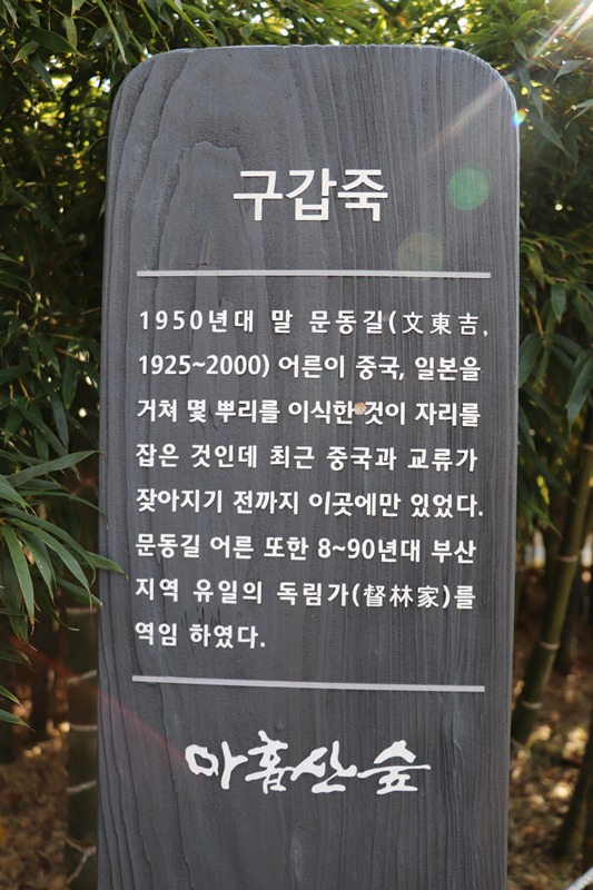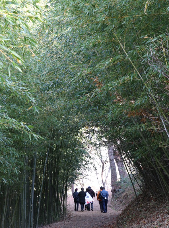 직장 퇴직동기 아홉이서 찾아간 아홉산숲은 아홉산 자락에 위치하여 붙은 이름이다. 보통 산 이름은 봉우리를 기준하여 짓지만 아홉산은 달랐다. 골짜기가 아홉 개였다. 아홉산은 야트막하지만 오목조목한 산세에다 금정산 주능선과 회동수원지 전경을 감상하면서 숲길을 걸을 수 있어 부산뿐 아니라 가까운 울산과 양산 등지에서도 찾아온 사람들이 많았다. 근년 들어서는 아홉산보다 아홉산숲이 더 주목을 받고 있다. 이제 우리도 선진국처럼 숲을 통한 치유가 각광받으면서 사람들이 숲으로 몰리는 것이다. 나뭇잎 사이를 스치는 바람에서 묻어나는 숲의 향기에다 새소리까지 직접 들을 수 있으니 이곳에선 그야말로 사계절을 오감으로 느낄 수가 있다. 이름마저도 순우리말로 아름다운 아홉산숲이 위치한 곳은 부산이지만 내가 양산지역에 근무하던 1990년대만 해도 양산에 속했고 울산에서 접근하기도 용이한 편이다. 대도시 근교에 이처럼 굵고 미끈한 소나무와 참나무 거목들이 하늘을 찌르고 삼나무 편백나무 대나무 숲이 빼곡하니 심신의 치유를 위해 찾는 사람들이 줄을 잇는 것은 당연할지도 모른다. 남평문씨 일파인 미동문씨 집안에서 9대에 걸쳐 관리해온 때문에 숲은 일제의 수탈과 6.25동란의 참화 그리고 땔감을 구하려는 사람들로부터도 지켜냈다고 한다. 한 집안에서 숲을 3백년 넘게 가꾸어오면서 쏟은 정성의 결과지만 남모르는 고충도 그만큼 많았을 것이다. 지극정성으로 가꾼 덕분에 숲다운 숲이 되면서 수많은 생명체들까지 깃든 것은 자연의 섭리일 것이다. 산토끼나 고라니 꿩 딱따구리가 우거진 숲과 대밭에 둥지를 틀었고 족제비와 오소리 반딧불이도 이끼와 버섯들과 이웃하며 살아가고 있다. 봄이면 층층나무 꽃이 흐드러진 아래로 맹종죽과 왕대나무에서 죽순까지 돋아나면서 향기가 온 산을 휘감는다. 산주 일가의 종택으로 고사리조차 귀하게 본다는 뜻을 가진 관미헌觀薇軒은 아홉산숲 생명공동체 대표를 맡은 종손이 살고 있는 한옥으로 60여 년 역사를 지녔다. 집은 못을 전혀 사용하지 않고 뒷산 나무로만 지었고 나무를 때는 아궁이와 함께 지금도 실제로 생활하는 공간이다. 집 마당엔 1925년 심은 은행나무가 우람하게 버티고 섰다. 산주의 할머니가 시집오면서 기념으로 심은 나무란다. 마당가엔 대나무마디가 거북 등껍질을 닮은 희귀한 구갑죽도 있다. 나무의 오목한 마디는 실을 정성들여 지그재그로 묶은 것 같아 사람들의 손길을 유혹한다. 숲에 아름드리 울진 금강송 종인 이삼백 년생 소나무가 곳곳에 남아 있는 것은 그동안 끊임없이 관리한 사람의 손길 덕분이란다. 그대로 내버려뒀으면 참나무나 서어나무에 밀려났을 것이라는 것. 그런 연유로 이곳 숲은 우리나라에서 사람이 오랜 기간 가장 모범적으로 가꾼 본보기로 평가받는다. 나무를 땔감으로만 사용하던 시절엔 산에서 좋은 나무부터 잘려져 나갔다. 보기 좋은 떡이 먹기 좋다는 말처럼 좋은 형질의 나무는 땔감으로 사용하기에도 그만큼 편리했다. 못생긴 나무가 선산을 지킨다는 속담도 그래서 생겨났을 터이다. 이곳 숲은 열등인자를 솎아내고 토양유기물 층을 꾸준히 관리해온 결과 임목육종에 필수적인 훌륭한 유전자 집단을 형성하게 되었다. 가슴 높이 직경이 70센티미터에 이르는 대형 상수리나무가 그 좋은 본보기라 할 수 있다. 인가 근처에서 이처럼 곧고 상처 하나 없는 참나무 거목을 만나기란 쉽지 않은 일이다. 간혹 오래된 사찰주변에서도 대형 참나무를 만날 수 있으나 그 대부분은 도토리를 따기 위해 메로 친 부위가 볼썽사납다. 숲에는 소나무와 참나무 군락 외에도 편백나무나 삼나무 맹종죽 왕대 서어나무가 무리지어 자란다. 14년 전 정밀조사에서 주왕산국립공원과 비슷한 529종 식물이 분포하는 것으로 밝혀졌다. 숲에 임도가 만들어진 것은 1950년대였고 그때 이미 우거진 숲을 관리하기 위해서였다. 임도가 생기고도 대나무와 히말라야시다가 더욱 뻗어나면서 하늘을 덮어 터널을 이루었다. 울창해진 숲은 관리상 어려운 문제를 안겨주기 시작했다. 대나무가 세력을 너무 뻗쳐 소나무 등 다른 나무들이 죽어갔던 것이다. 성장속도가 빠르면서 햇빛 경쟁에서도 우세한 대나무가 땅속줄기를 확장해나가면 어느 나무도 견디지 못한다. 과거엔 해마다 대나무를 솎아내 김발재료 등으로 판매하고 얻은 수입으로 숲을 관리했다. 하지만 이제 정월대보름행사 때 달집 만드느라 몇 개 팔려나가는 게 매출의 전부가 되었다. 숲에서 나오는 소득이 거의 없는데도 해마다 유지관리에 수천만 원이나 들어간다니 그 고충이 오죽할까. 대나무는 공기 속 이산화탄소를 흡수해 고정하는 능력이 뛰어나므로 기후변화를 막는 수종으로 주목받고 있다. 1980년대까지 대나무는 소나무 다음으로 쓰임이 많아 생활용품이나 공예품재료를 차지했었다. 하지만 플라스틱이 널리 보급되면서 대나무 수요가 급격히 줄어 그 용도는 죽순이나 숯, 대통밥, 술, 공예품에 한정되고 말았다. 거꾸로 이곳 숲에선 대나무가 너무 번성해 문제를 일으키기도 한단다. 이 지역이 상수원보호구역과 그린벨트로 묶이면서 관리가 거