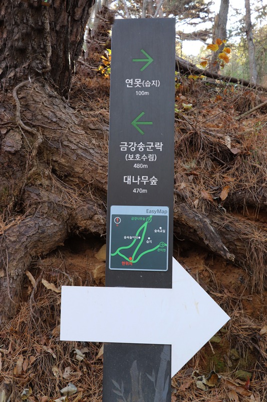 숲은 한 바퀴 도는데 1시간 반 정도 걸린다.