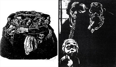 명도대비를 가장 극명하게 활용하는 장르는 판화입니다. 뛰어나 드로잉 작가이자 판화작가인 케테 콜비츠는 전쟁의 고통과 가난하고 억압받는 민중의 삶을 주제로 많은 작품을 남겼습니다. 그녀의 판화 2점을 통해 조형적 요소로서의 명암과 삶 속에 존재하는 명암의 극명한 대비를 느껴보는 것도 의미 있는 일이 될 것입니다. [어머니들]은 죽음 앞에 내몰린 어머니들이 아이들을 감싸 안고 공포에 떨고 있고 [실업]은 더 설명이 필요하지 않을 만큼 실업의 고통을 가족의 표정을 통해 극명하게 보여주는 걸작입니다. 색채를 사용하지 않아도 명도대비의 효과적인 활동은 단순하면서도 강렬한 표현이 가능함을 보여주고 있습니다. 지금까지 회화에서 명암효과에 관해 간단히 설명했습니다. 다음 연재될 5편에서는 회화에 있어 색채의 효과에 관해 설명합니다. | |