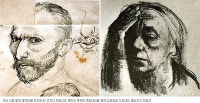 아래 반 고흐의 연필 자화상은 입체감 보다는 섬세한 형태에 비중을 두고 거친 선에 의해 작가의 불안정하고 예민한 분위기를 드러내고 있습니다. 정규 미술교육을 받지 않고 독학으로 미술을 공부한 반 고흐의 드로잉을 대하면 그의 놀랍도록 예리한 관찰력과 섬세한 표현 능력을 인정하며 감탄하게 됩니다. 또한 그의 수많은 드로잉은 열정적인 노력이 함께 했다는 것을 증명하기에 충분합니다.