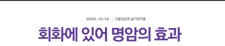 우리는 빛 에너지를 통해 사물을 볼 수 있습니다. 또 밝고 어두운 차이인 명암의 대비를 통해 선이나 형태를 구체적으로 지각할 수 있습니다. 지금 화면의 글을 읽을 수 있는 것도 흰 바탕과 대비되는 어두운 형태의 글자를 구별함으로써 가능한 것입니다. 회화에서 명암은 색채와 함께 형태와 입체감, 공간감 그리고 정서를 표현하는 중요한 조형적 요소입니다. 시각예술에서 조명과 명암, 색채는 서로 분리하기 어렵고 상호 연관된 설명이 요구되는 영역이지만 이 글은 평면회화의 명암 효과에 한정하여 전개합니다.