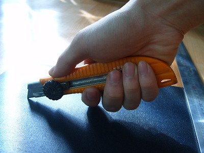 강한힘으로 자를수는 있지만 커터칼의 끝부분이 잘려나가기 쉬운 그립법입니다.