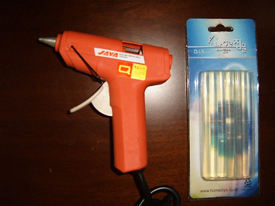 글루건은 콘센트에 코드를 꼽아 사용합니다 (요즘은 충전식 글루건도 있더군요)