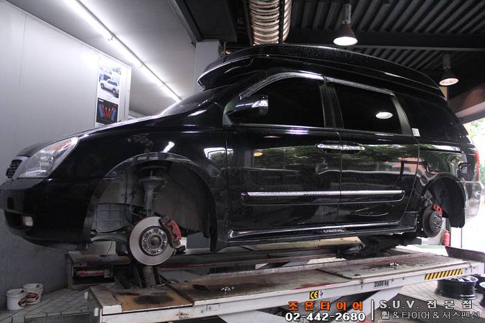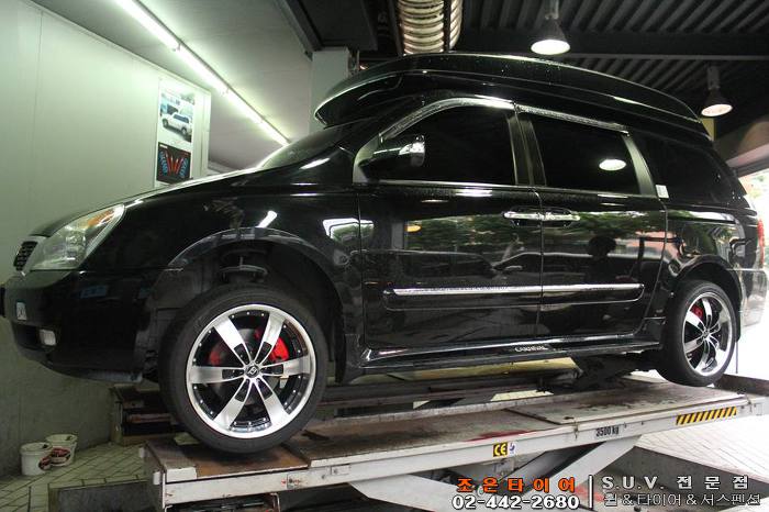 그랜드 카니발 휠튜닝 작업을 위해 매장에 입고가 되었구요