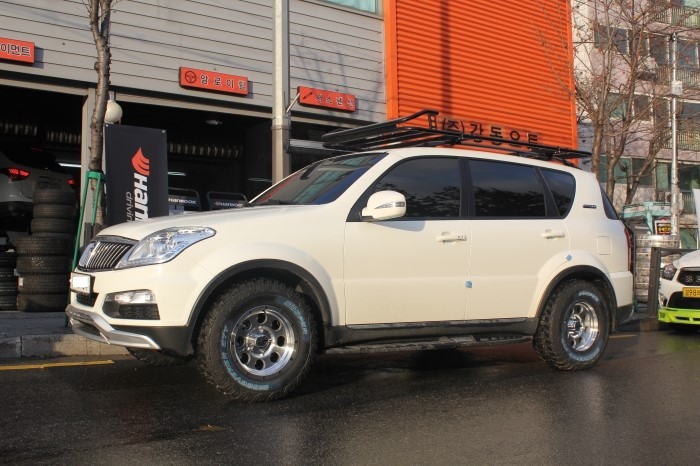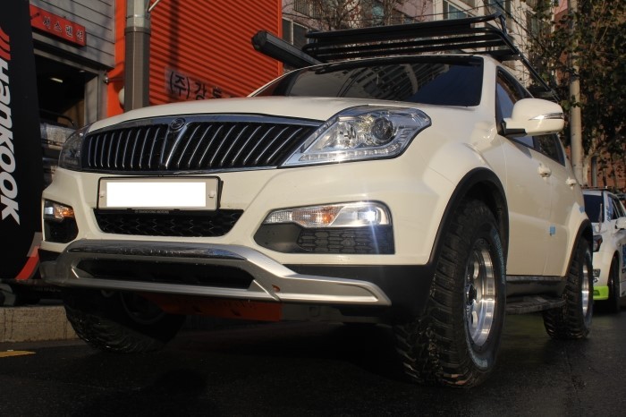 렉스턴W차량 16인치휠 머드락AMS 실버폴리쉬와 쿠퍼타이어 STT255-70-16 보호용기능인 오프로드용품언더커버와 데후커버 장착입니다