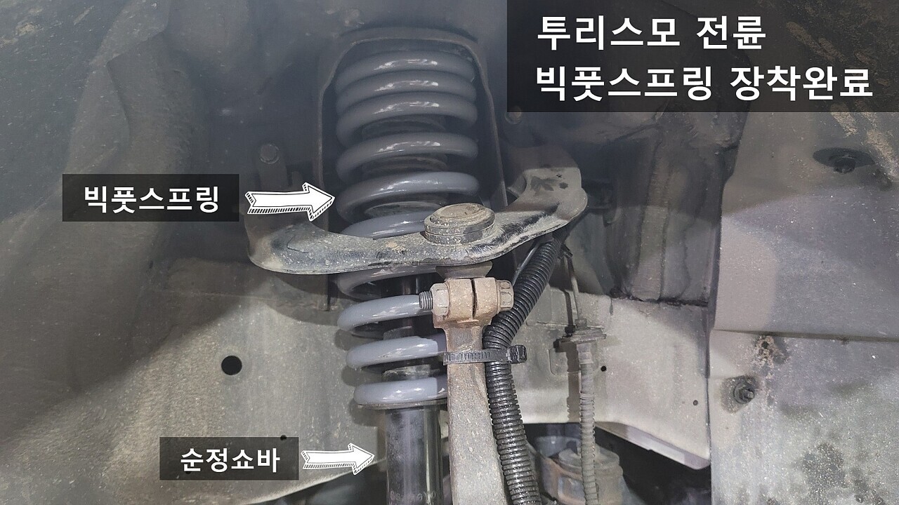 순정스프링과 소재가 다른 강성의 빅풋 스프링을 장착하면