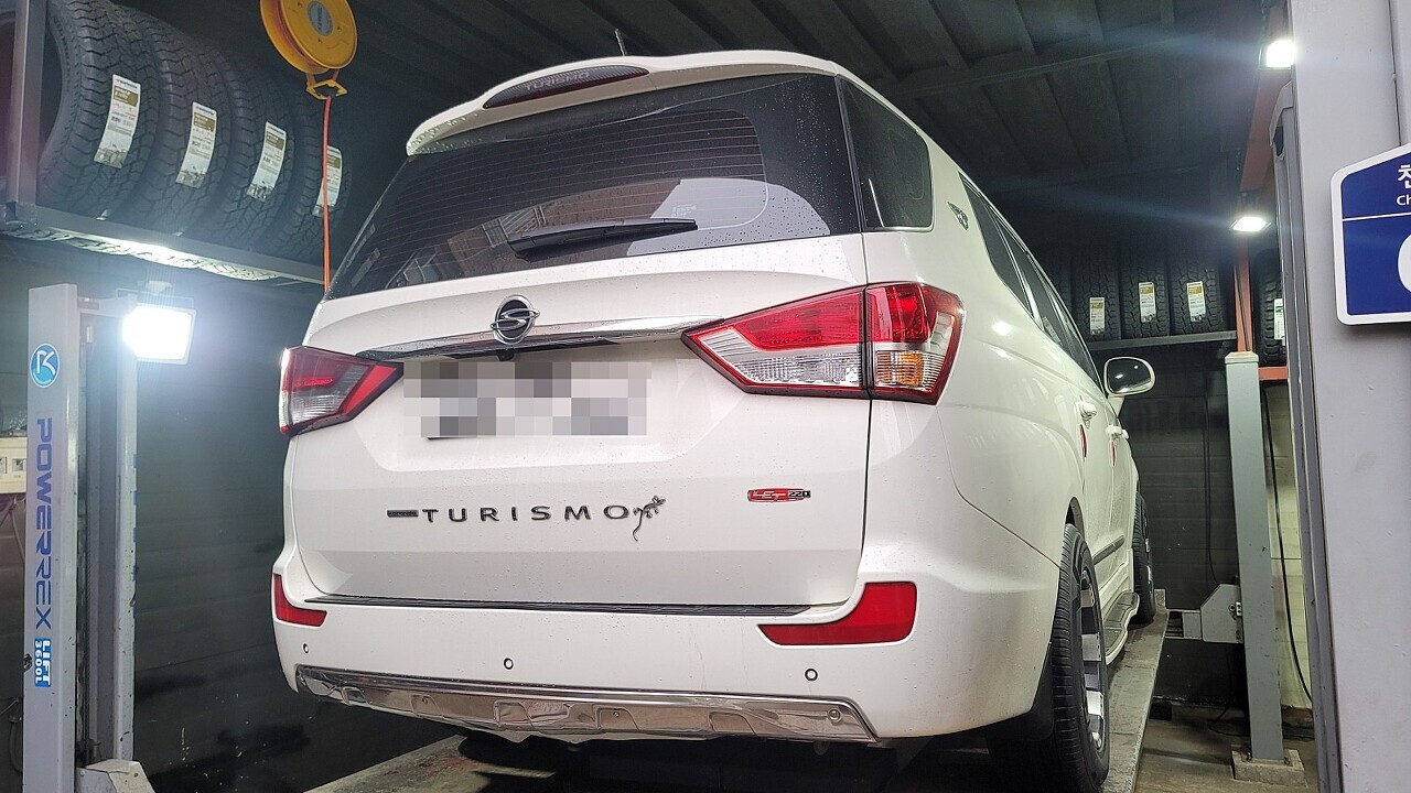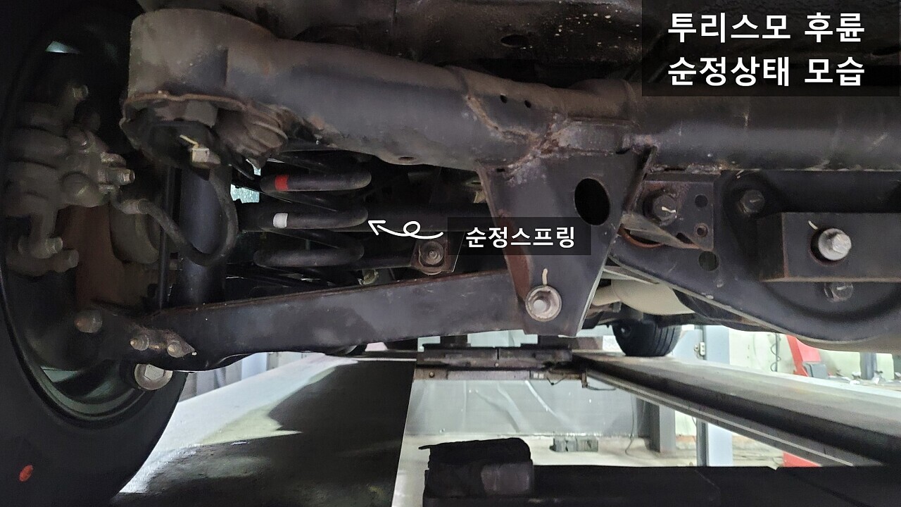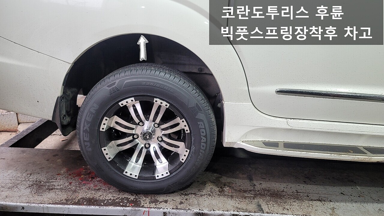 코란도투리스모 후륜 스프링 장착전 / 장착후 차고 모습