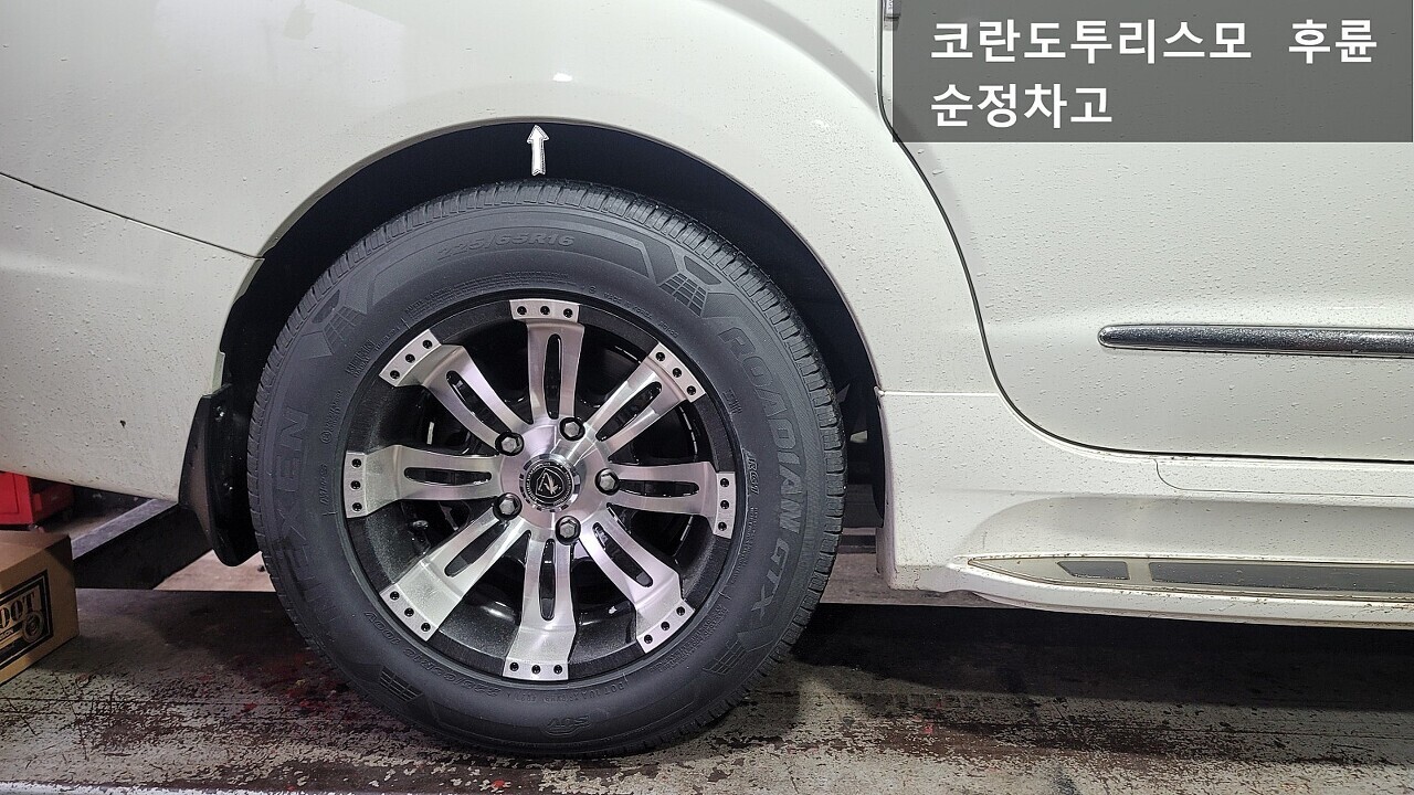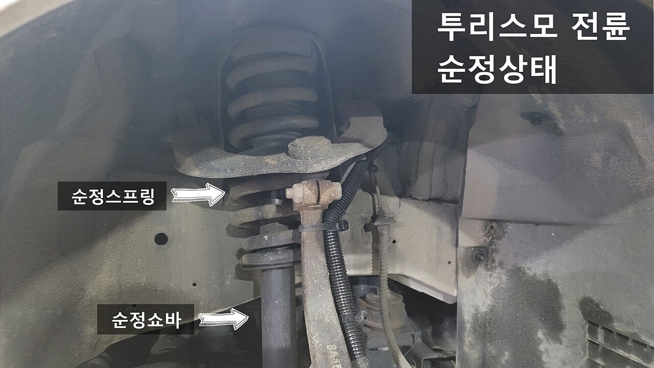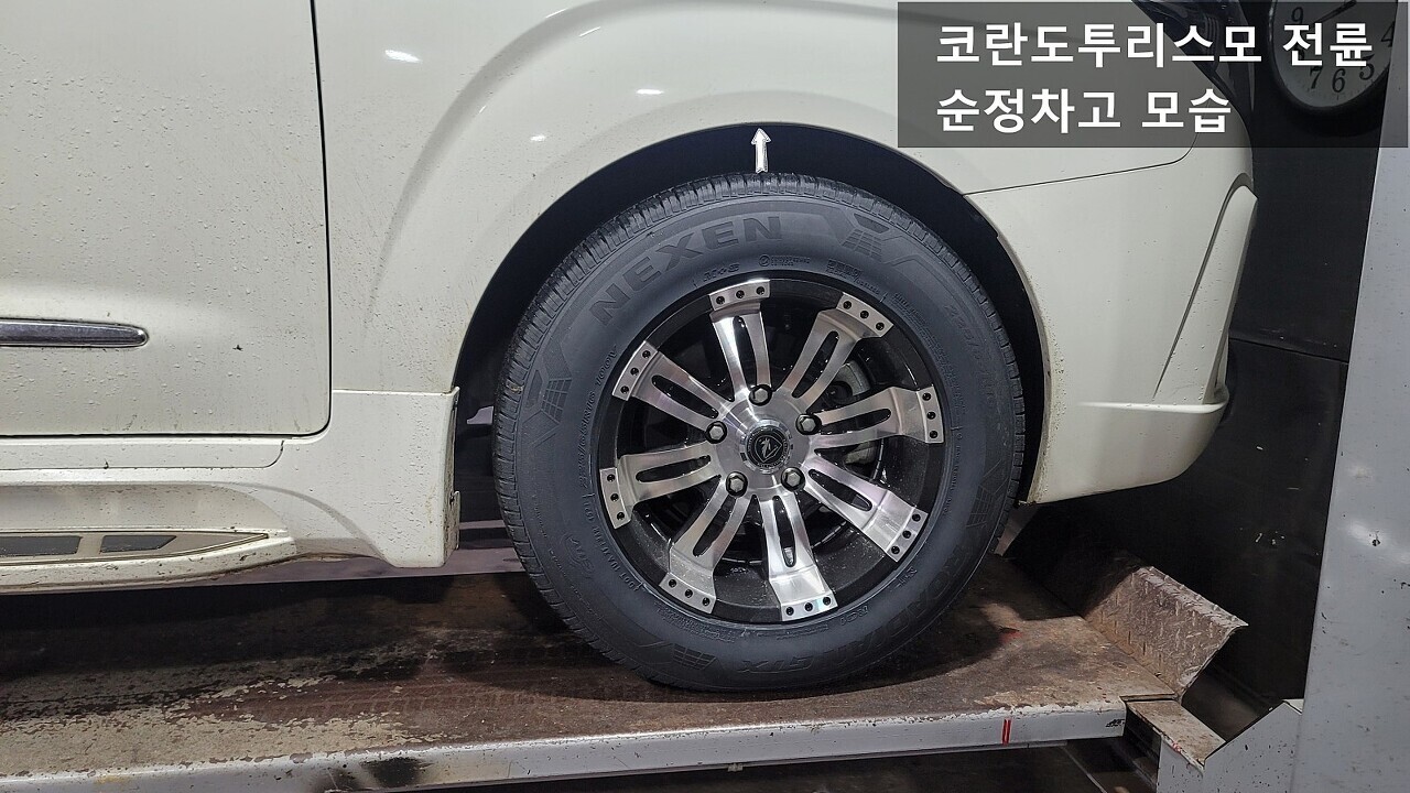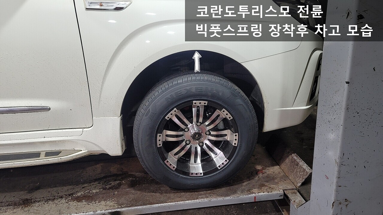 코란도투리스모 전륜 스프링 장착전 / 장착후 차고 모습